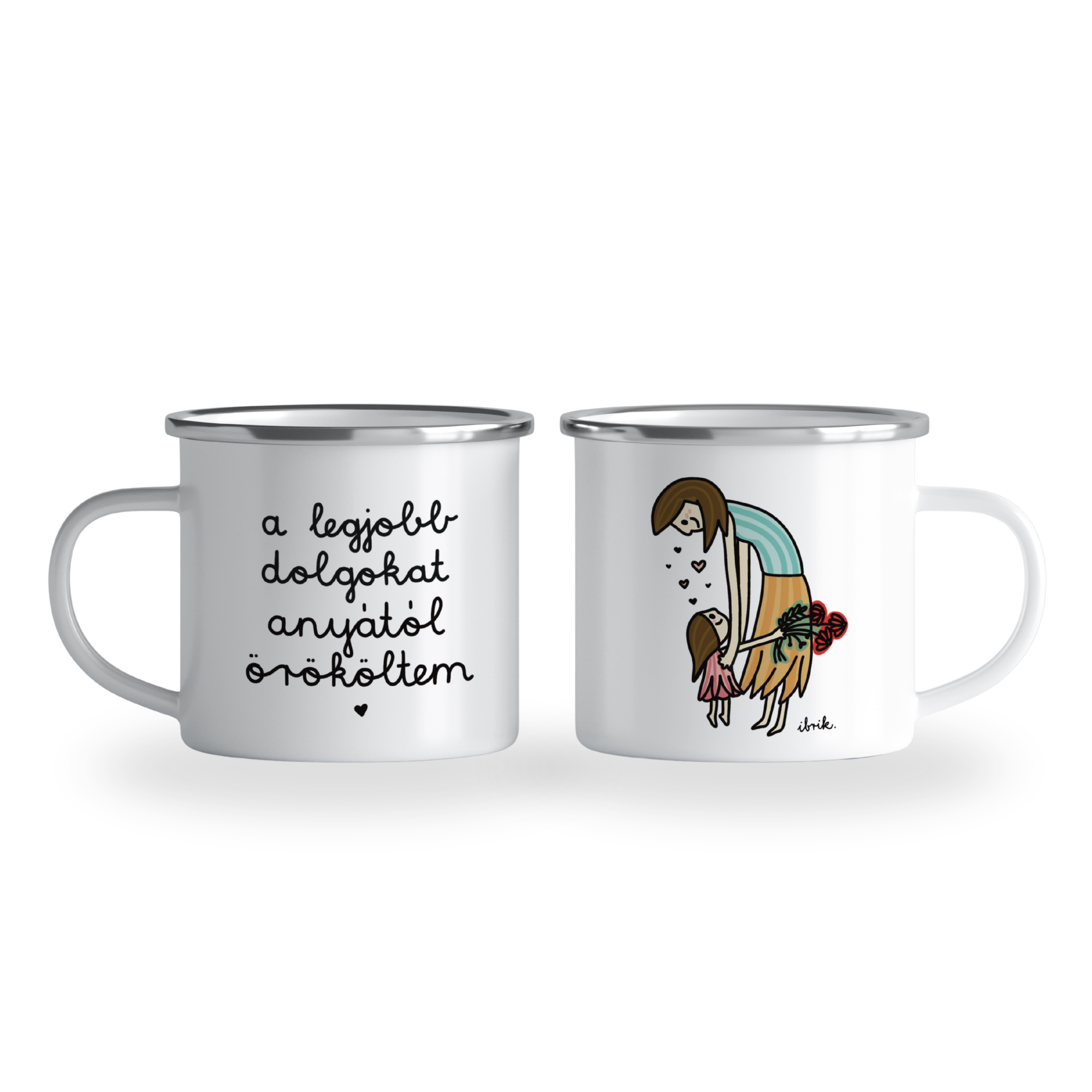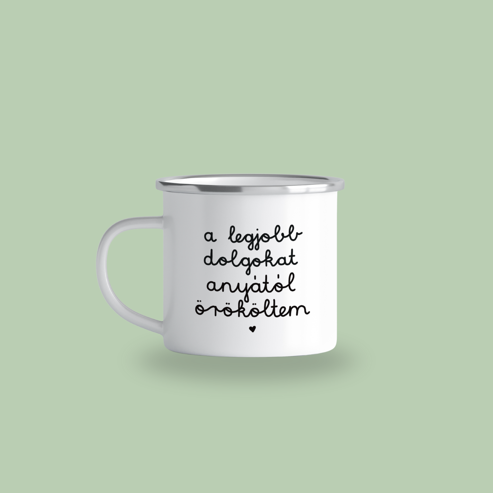 "A legjobb dolgokat anyál örököltem" cană emailată, alb, ibrik, 360 ml