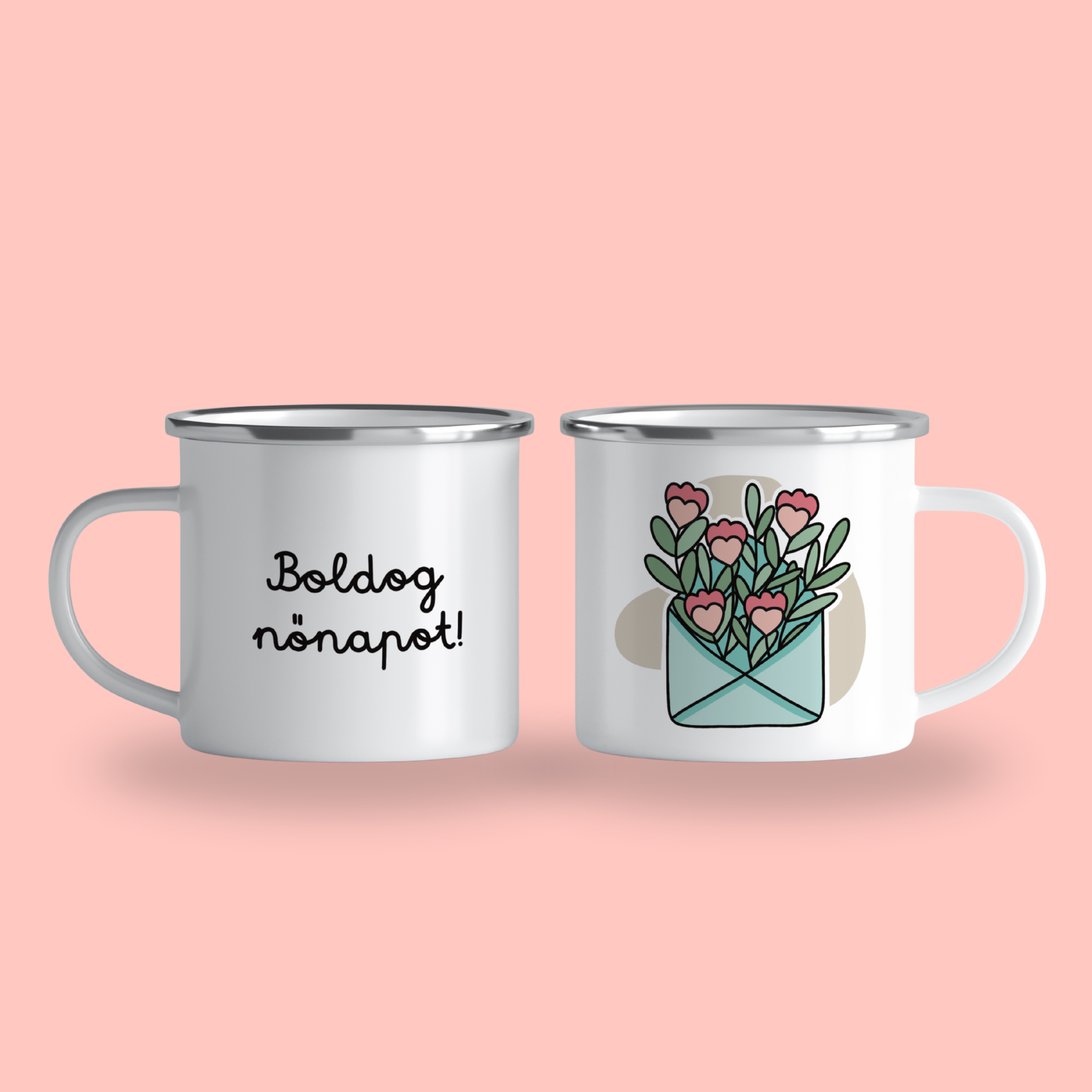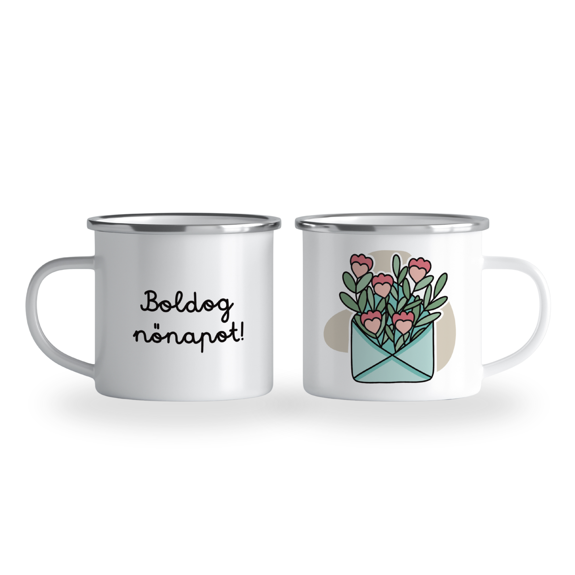 „Boldog nőnapot!” cană emailată, alb, ibrik, 360 ml