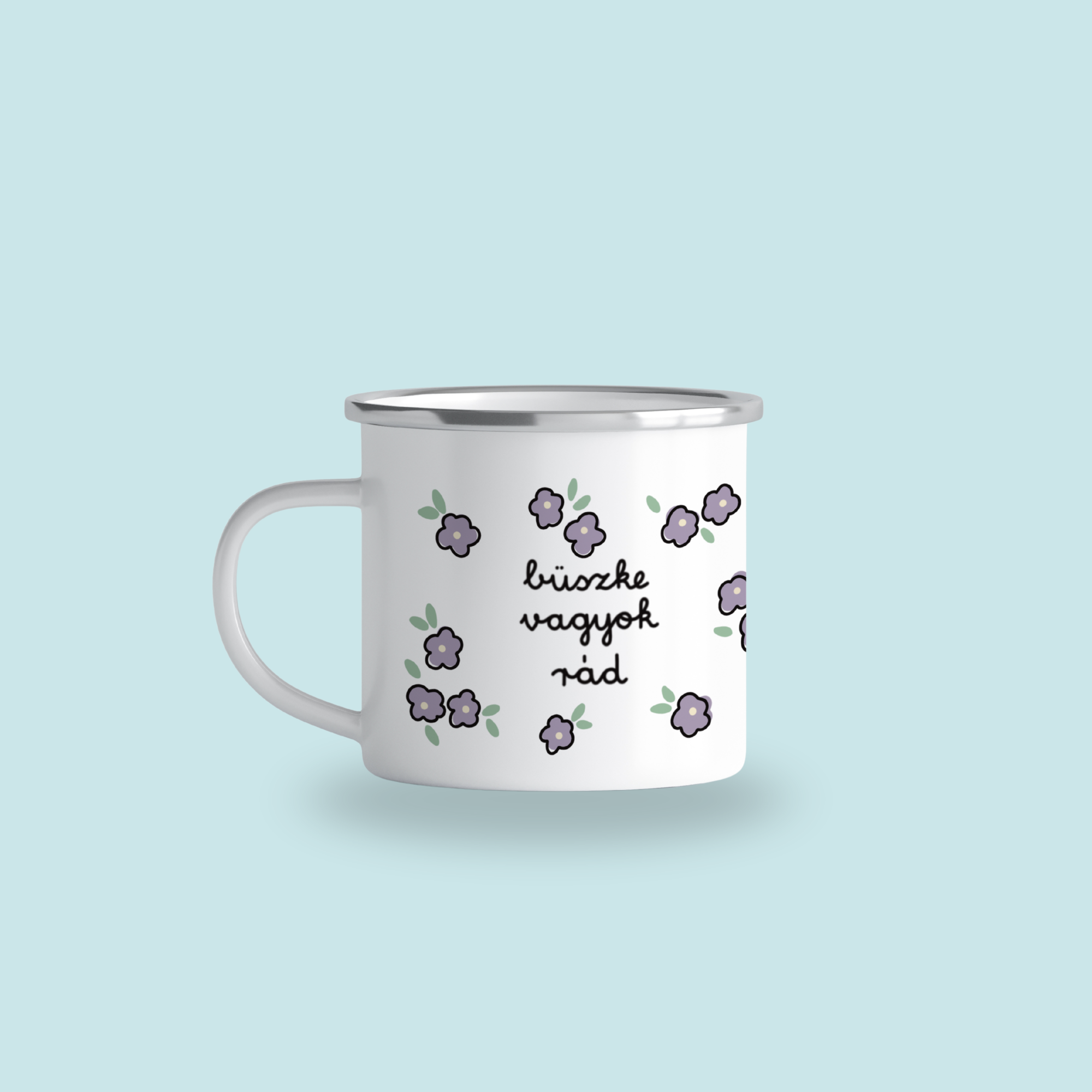 „Büszke vagyok rád”- violets, cană emailată, alb, ibrik, 360 ml