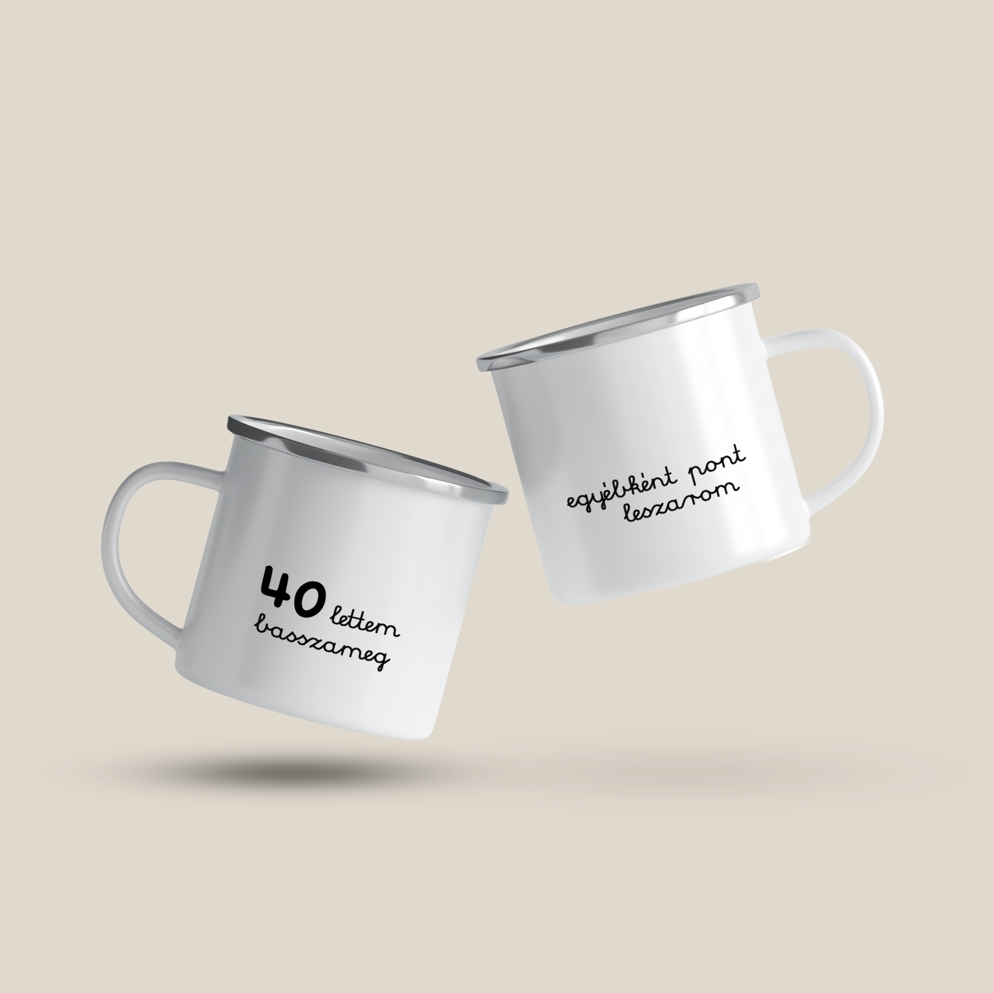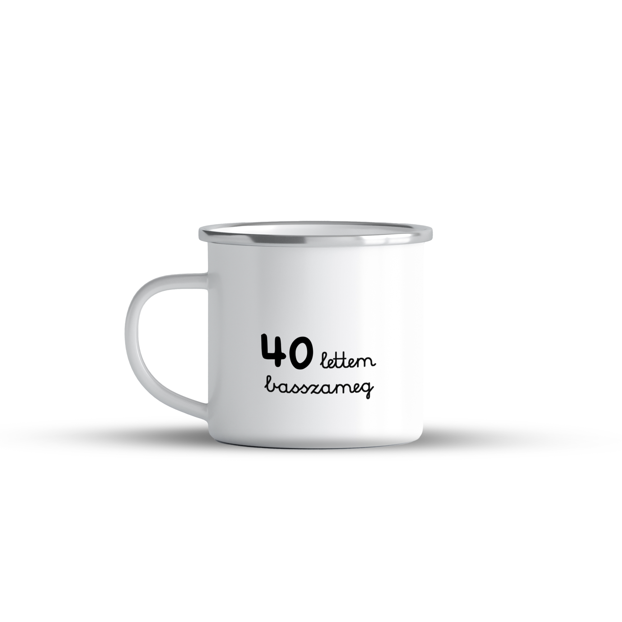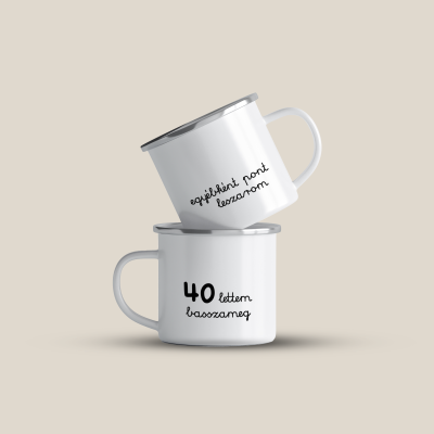 Cană emailată „40 lettem”, alb, ibrik, 360 ml