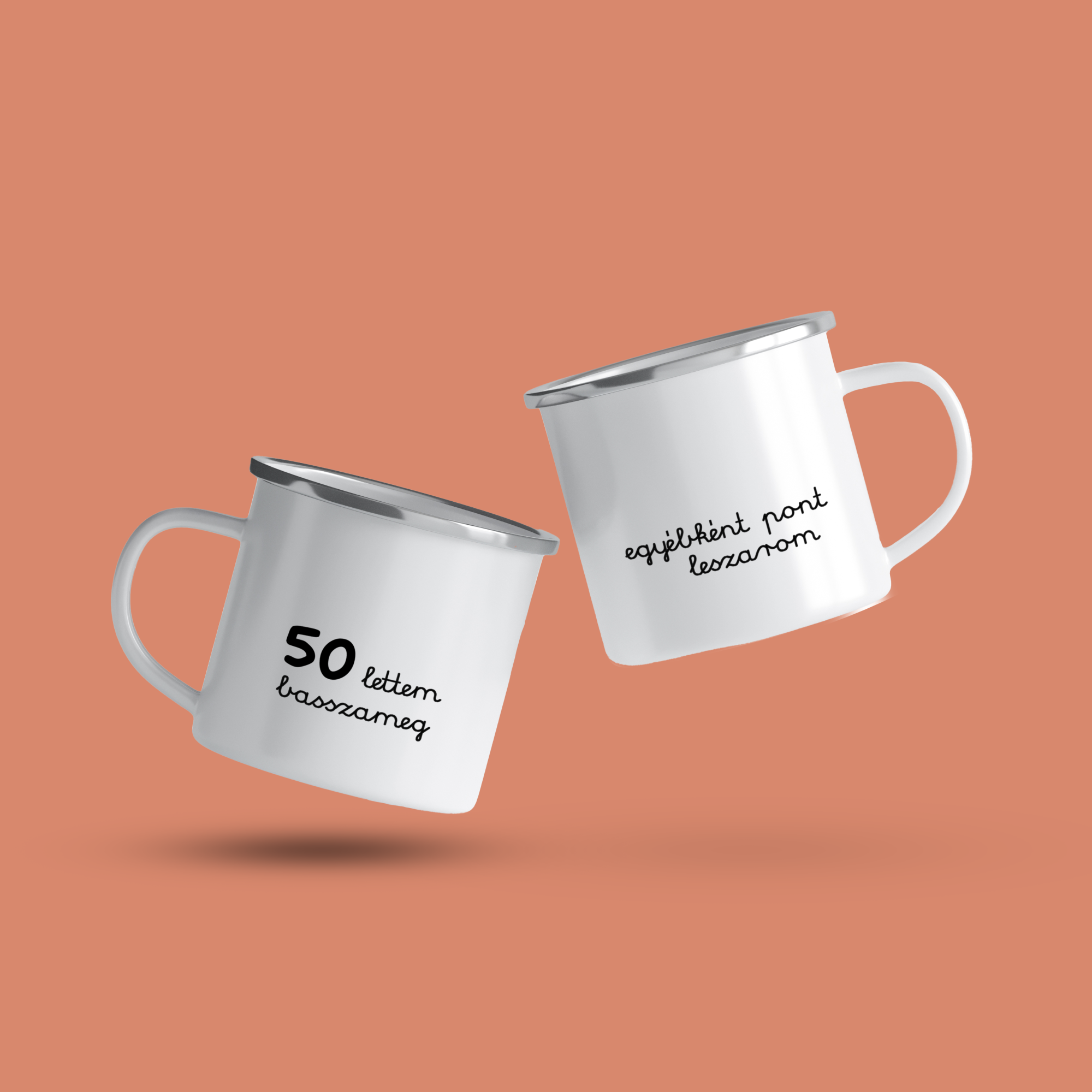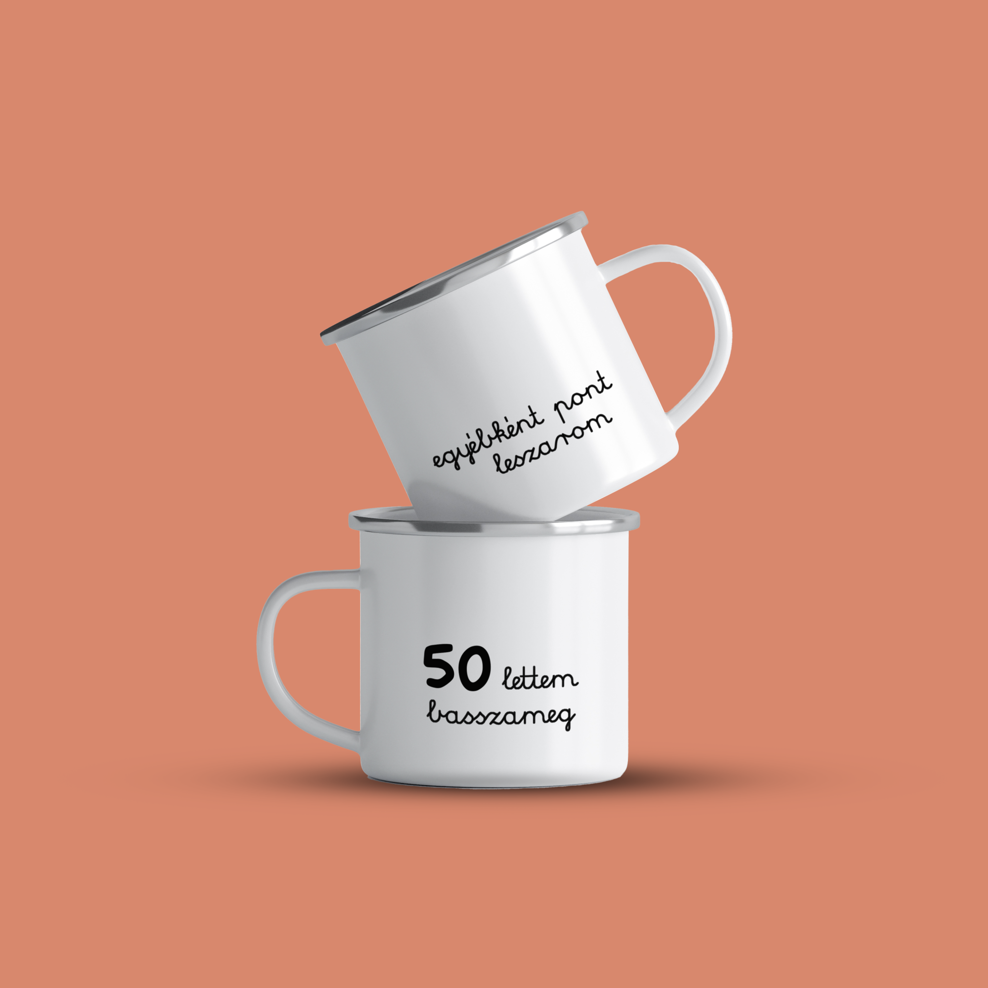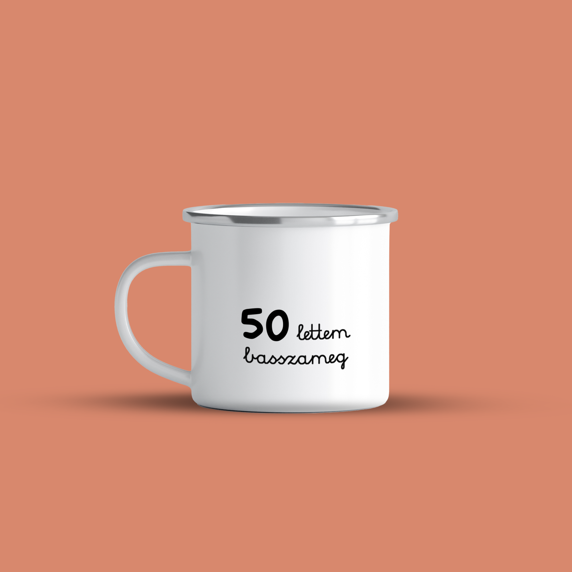 Cană emailată „50 lettem”, alb, ibrik, 360 ml