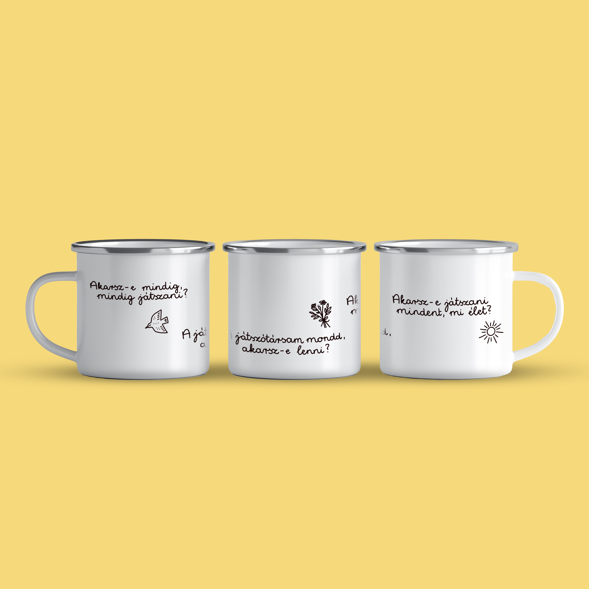 Cană emailată „Akarsz-e játszani BW”, alb, ibrik, 360 ml