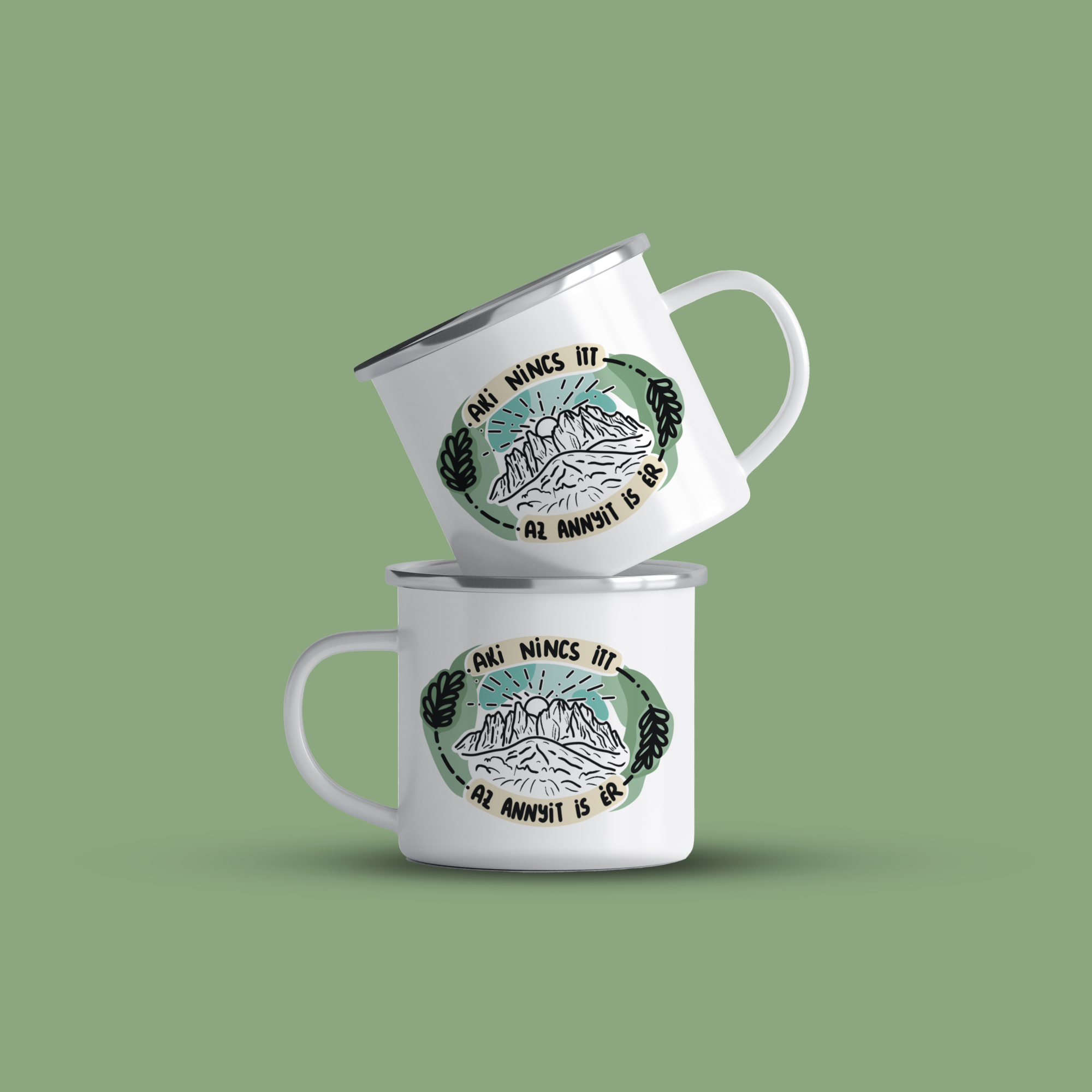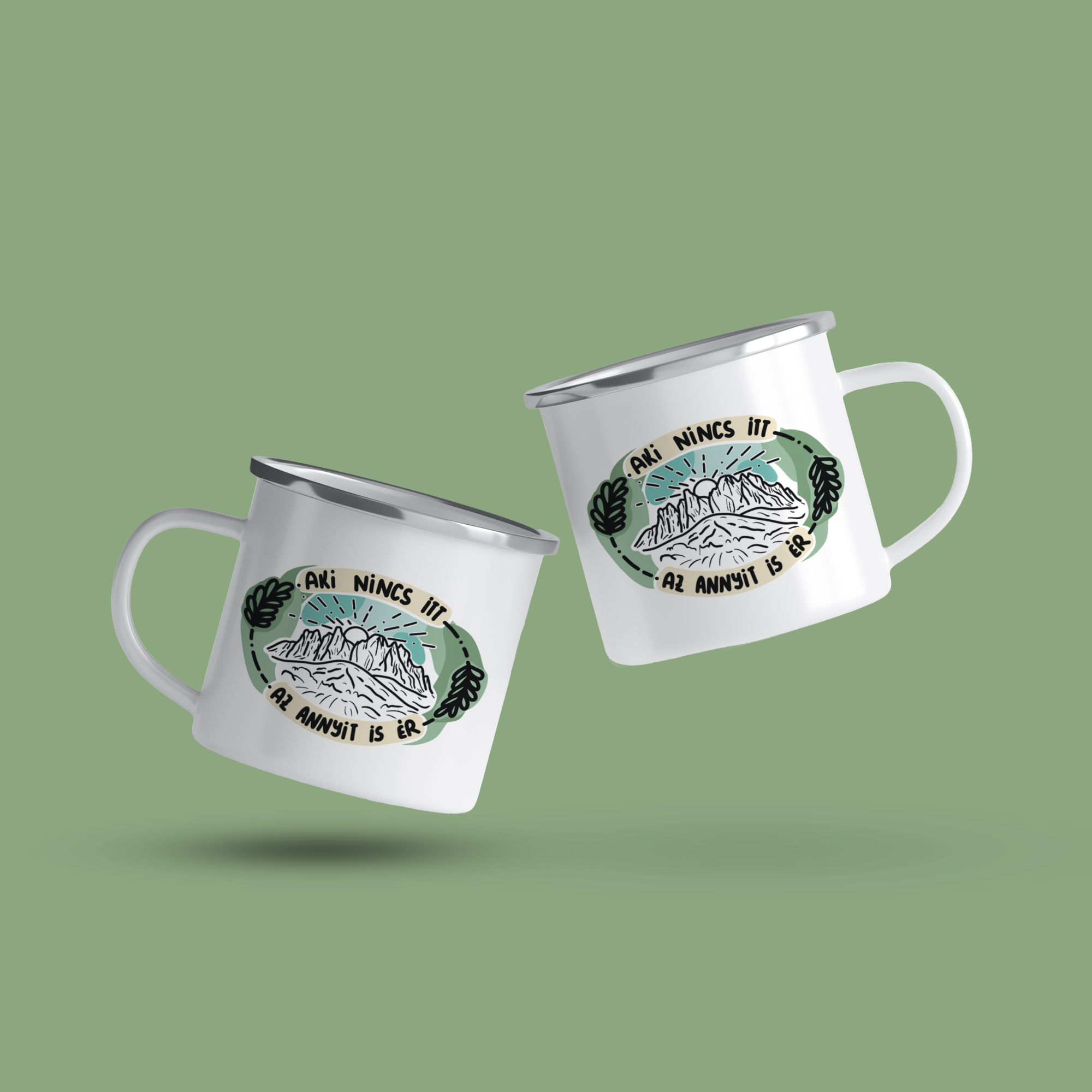 Cană emailată de calitate cu o capacitate de 360 ml. Grafica este unică si desenată manual.