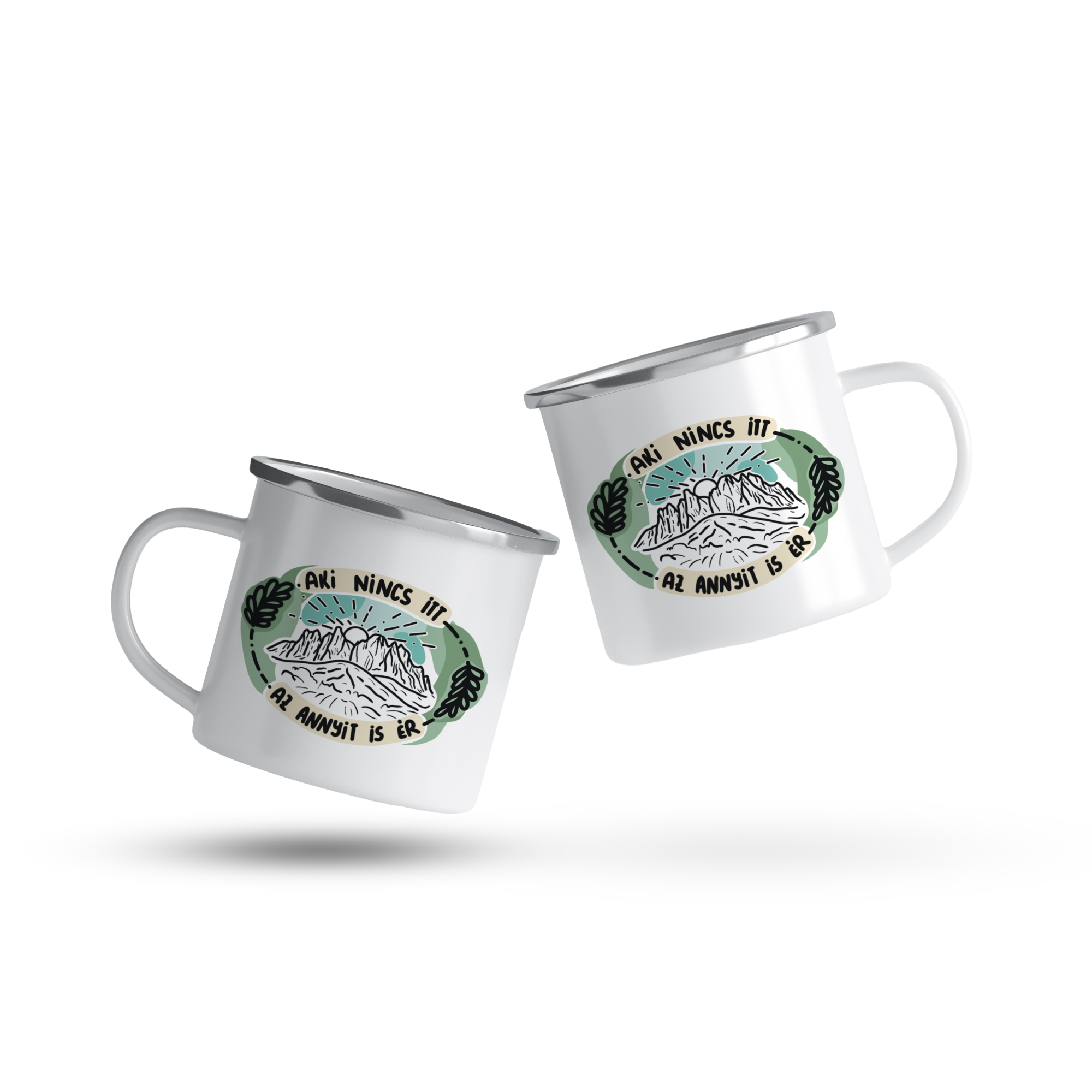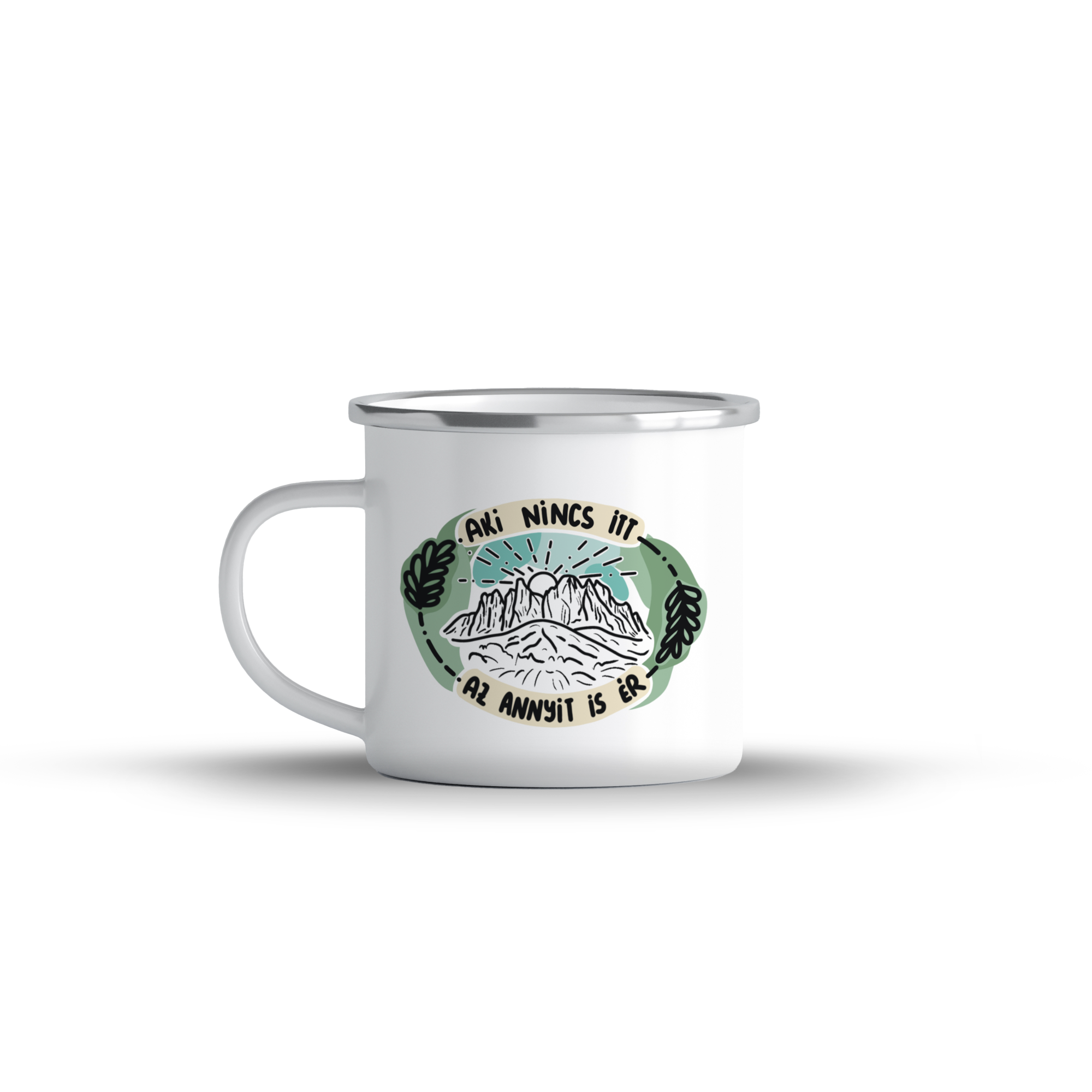Cană emailată „Aki nincs itt annyit is ér”, alb, ibrik, 360 ml