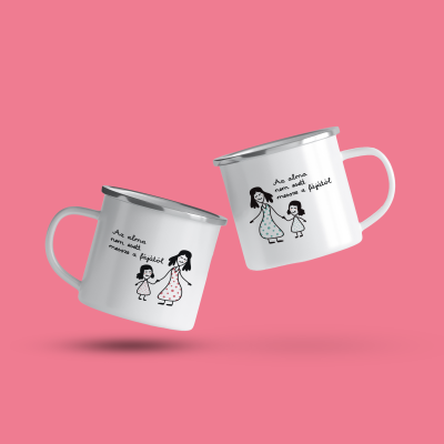 Cană emailată de calitate cu o capacitate de 360 ml. Grafica este unică si desenată manual.