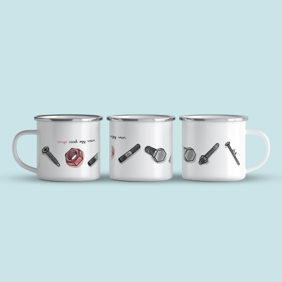 Cană emailată de calitate cu o capacitate de 360 ml. Grafica este unică si desenată manual.