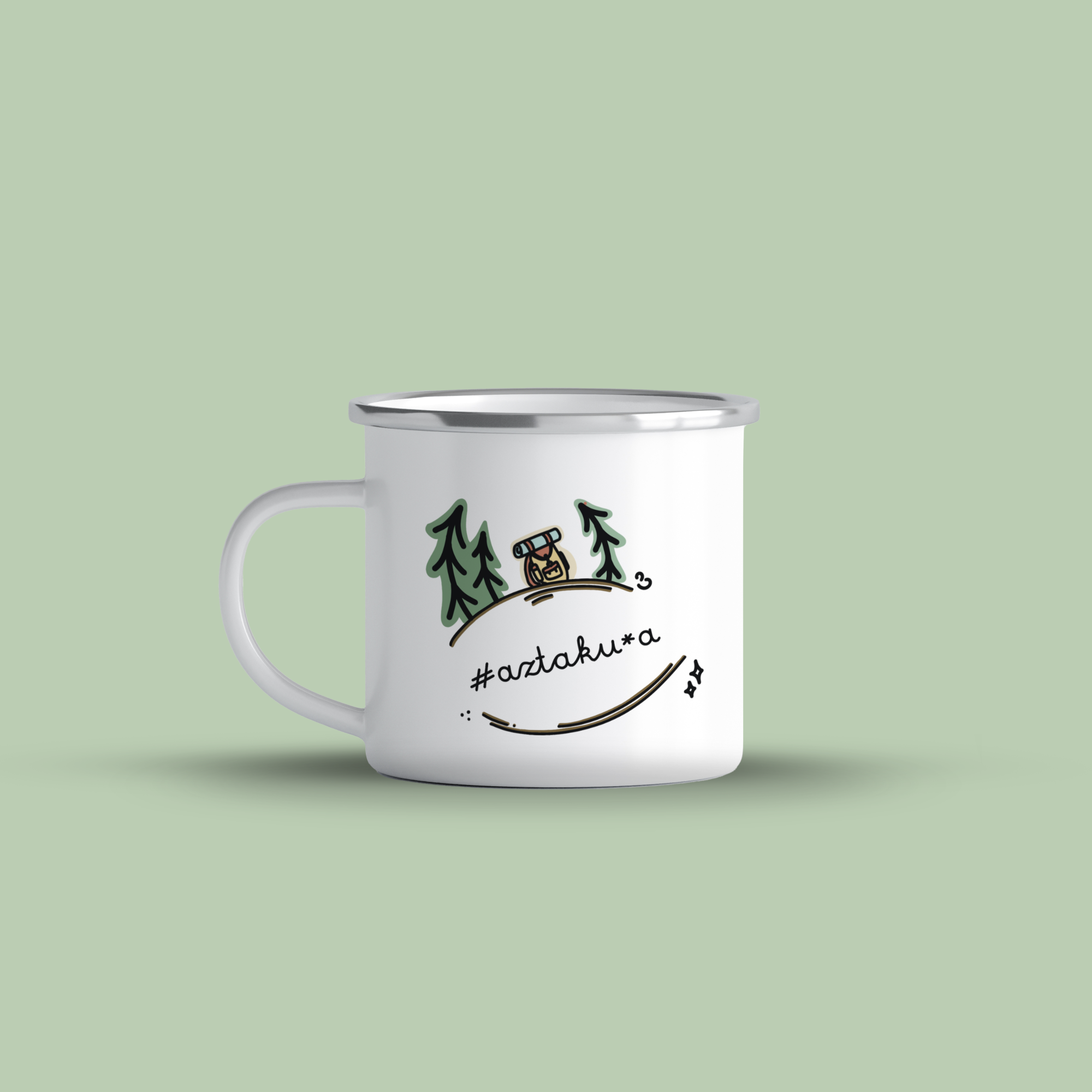 Cană emailată de calitate cu o capacitate de 360 ml. Grafica este unică si desenată manual.