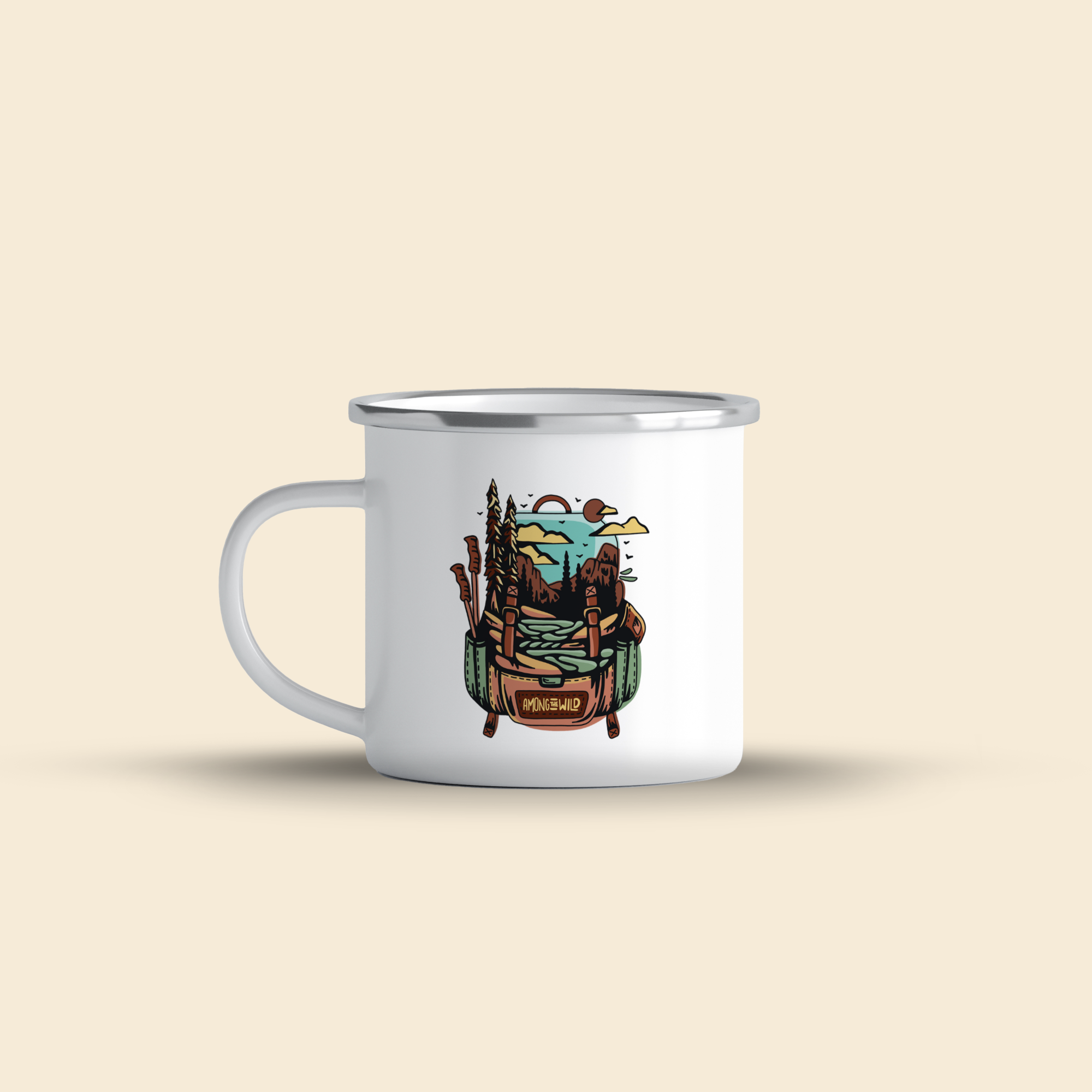Cană emailată de calitate cu o capacitate de 360 ml. Grafica este unică si desenată manual.