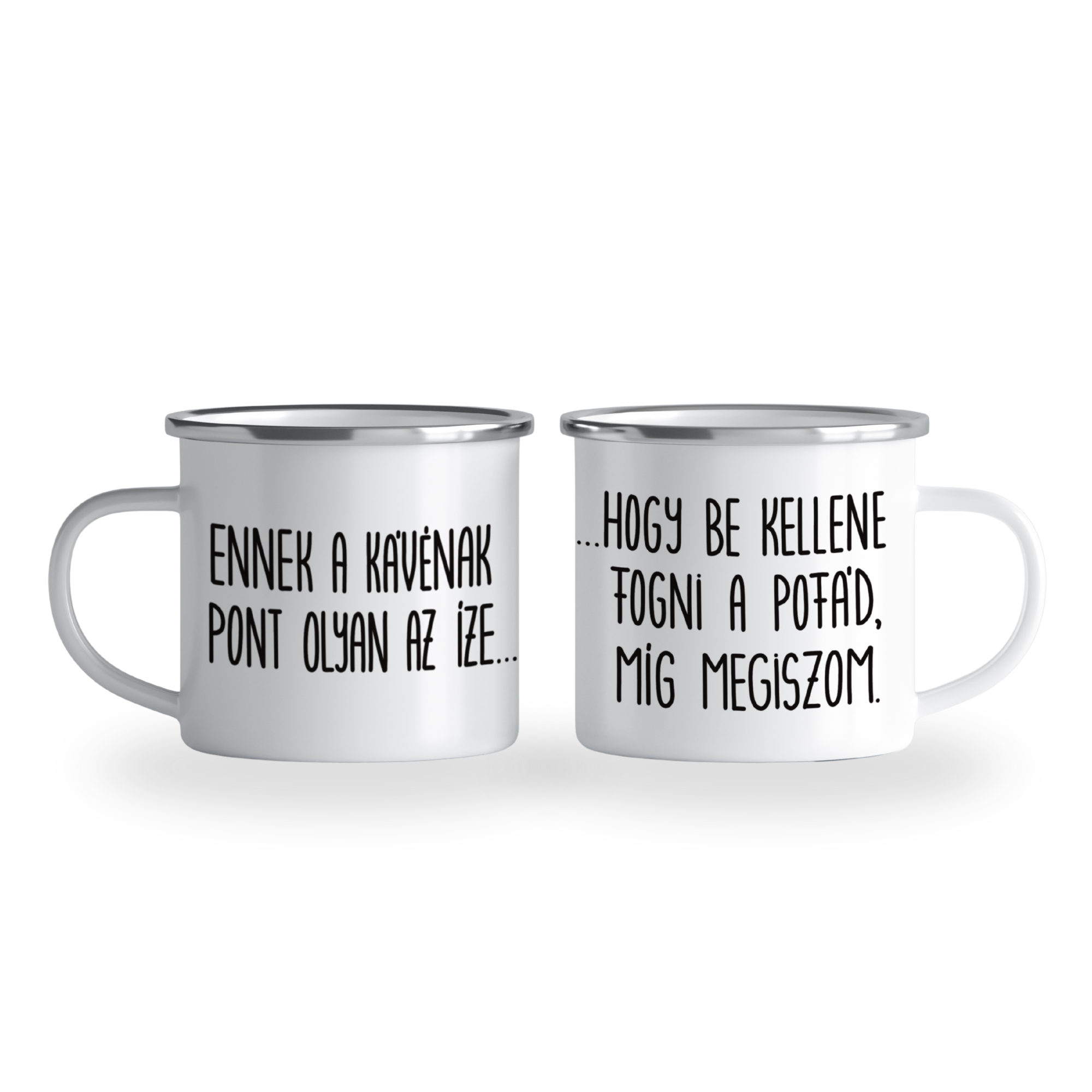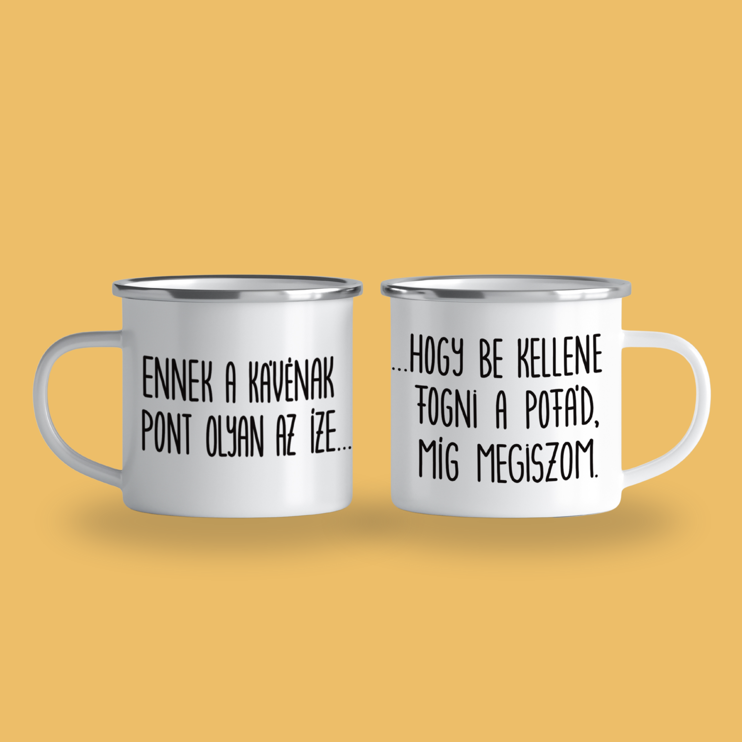 Cană emailată „Be kellene fogni a pofád, míg megiszom”, alb, ibrik, 360 ml