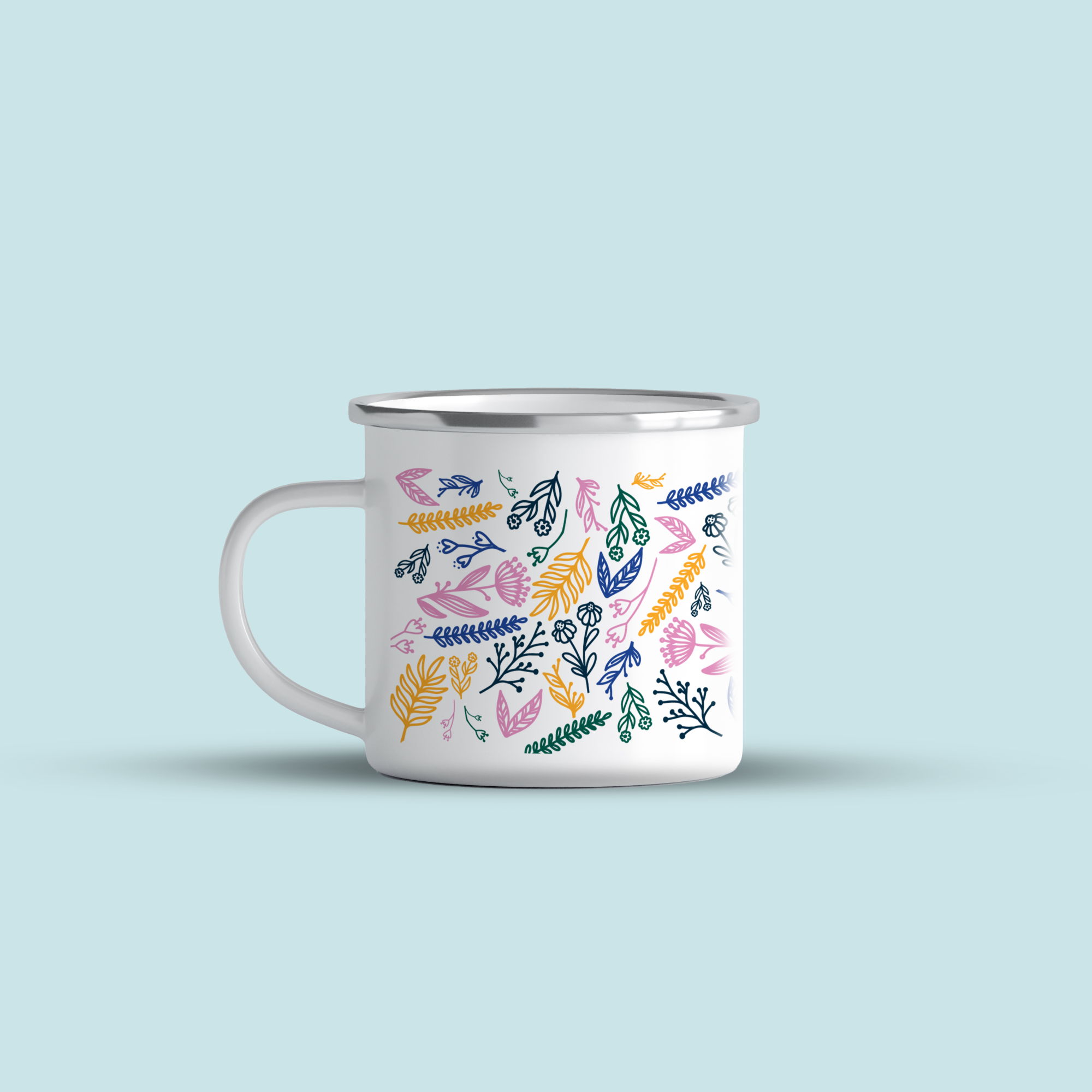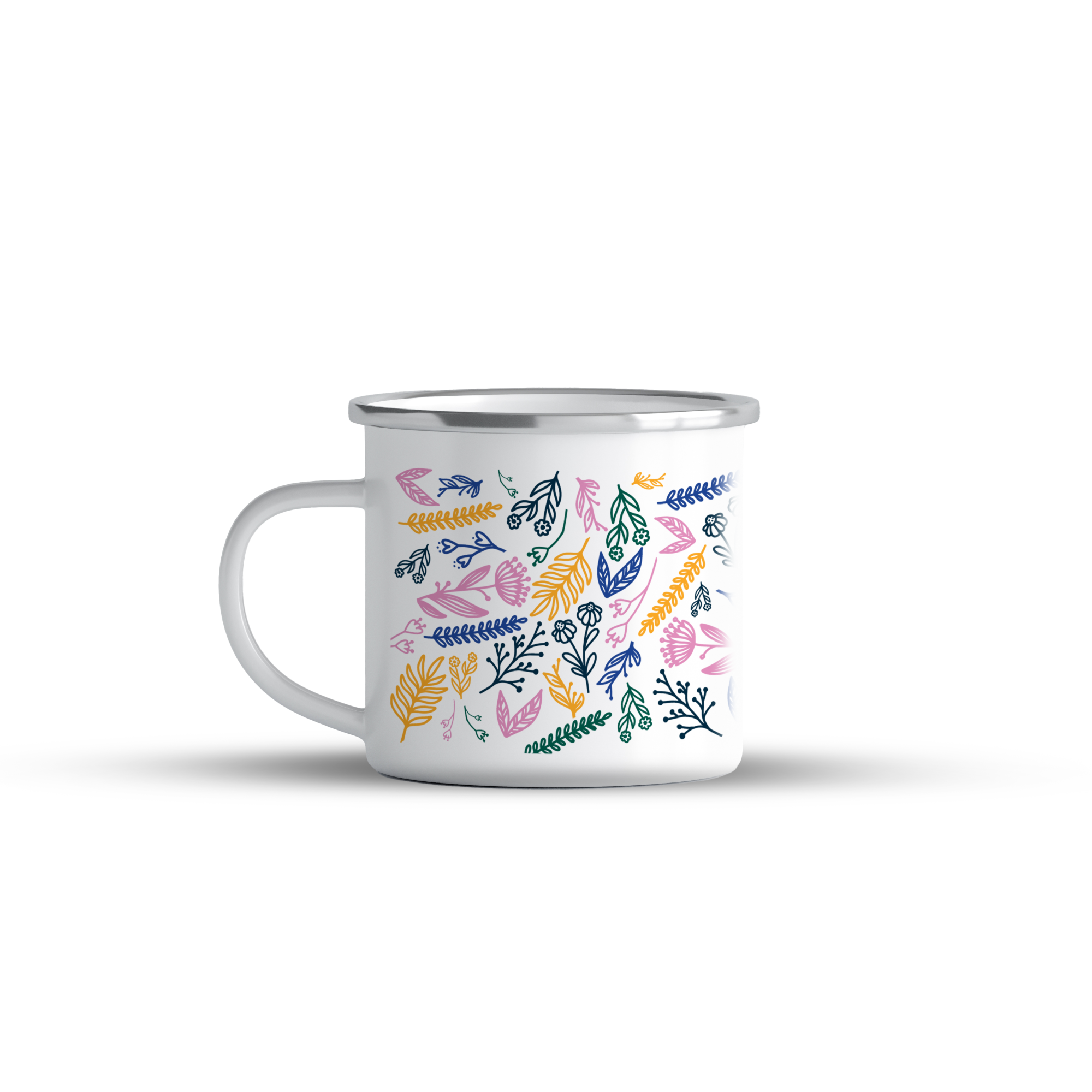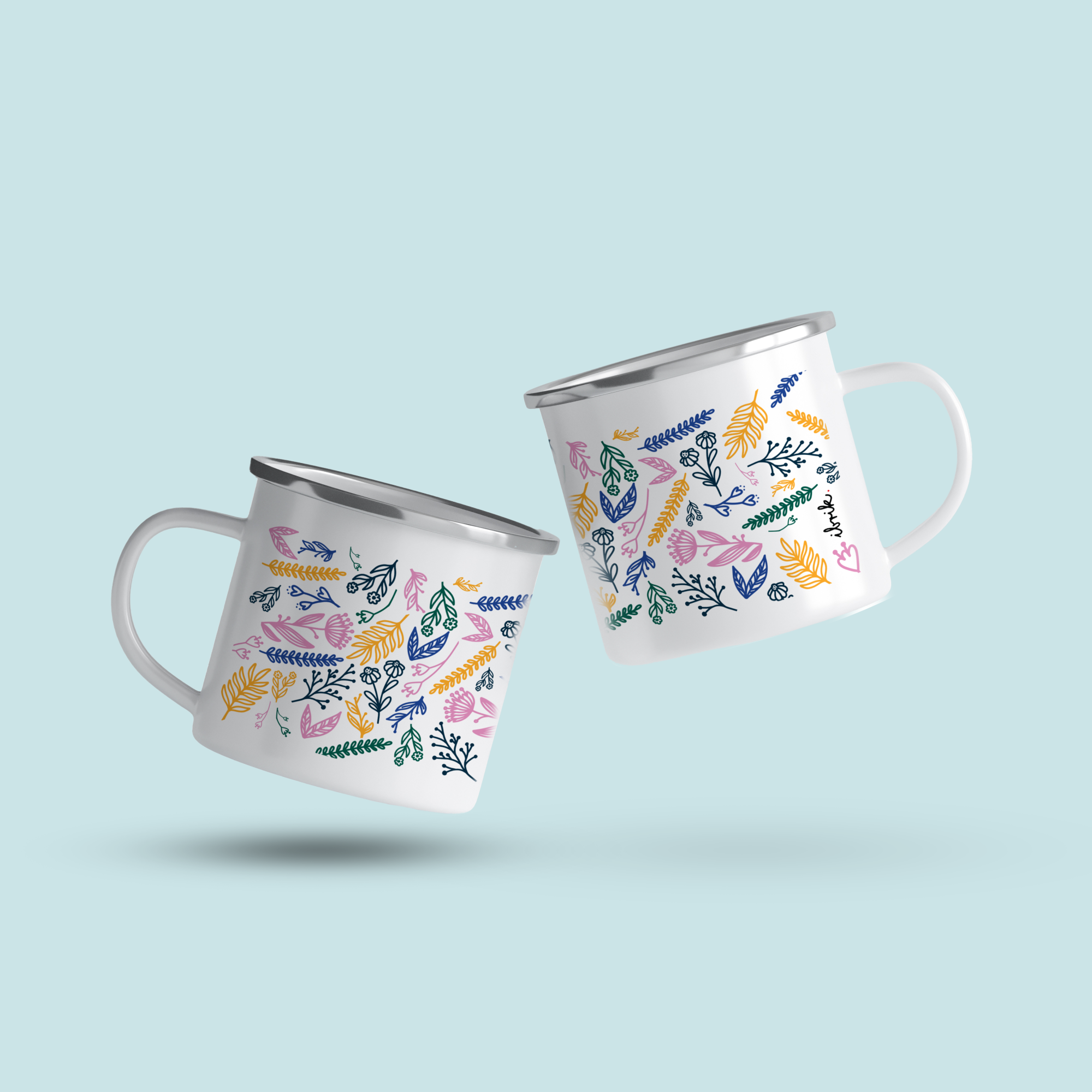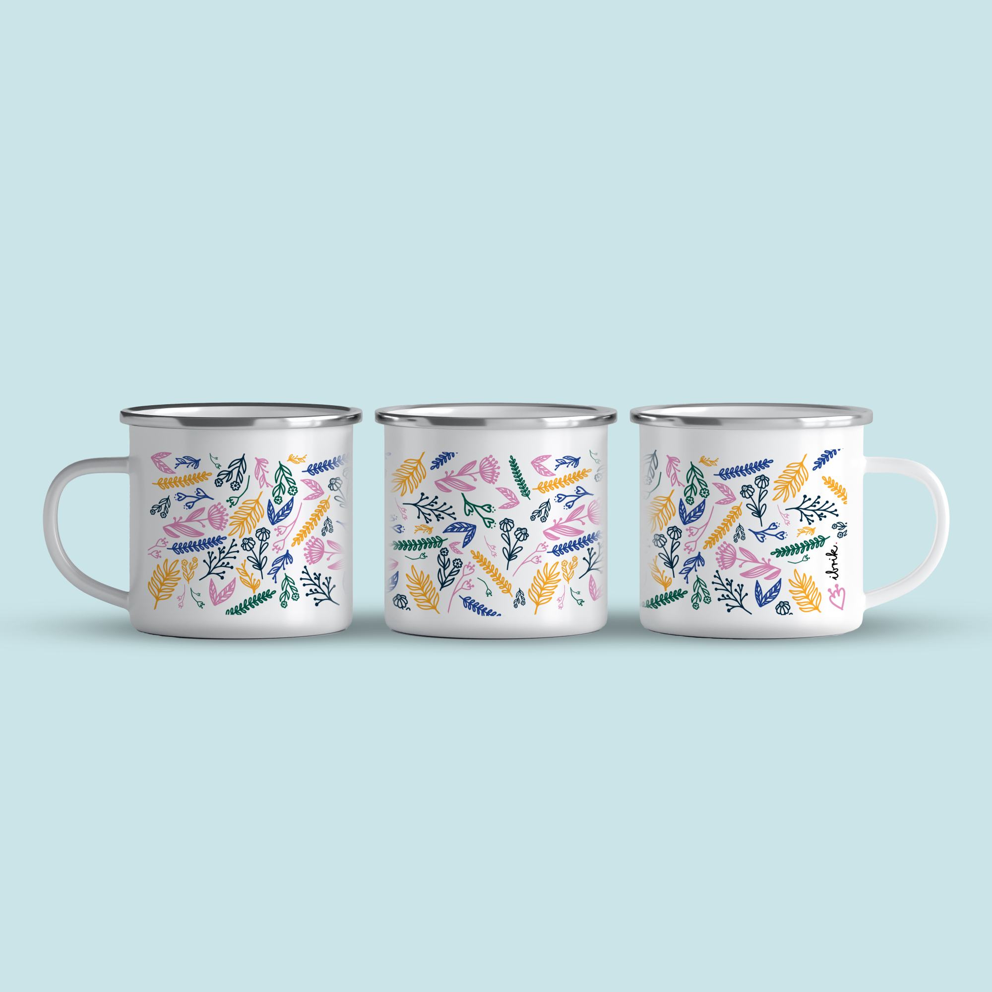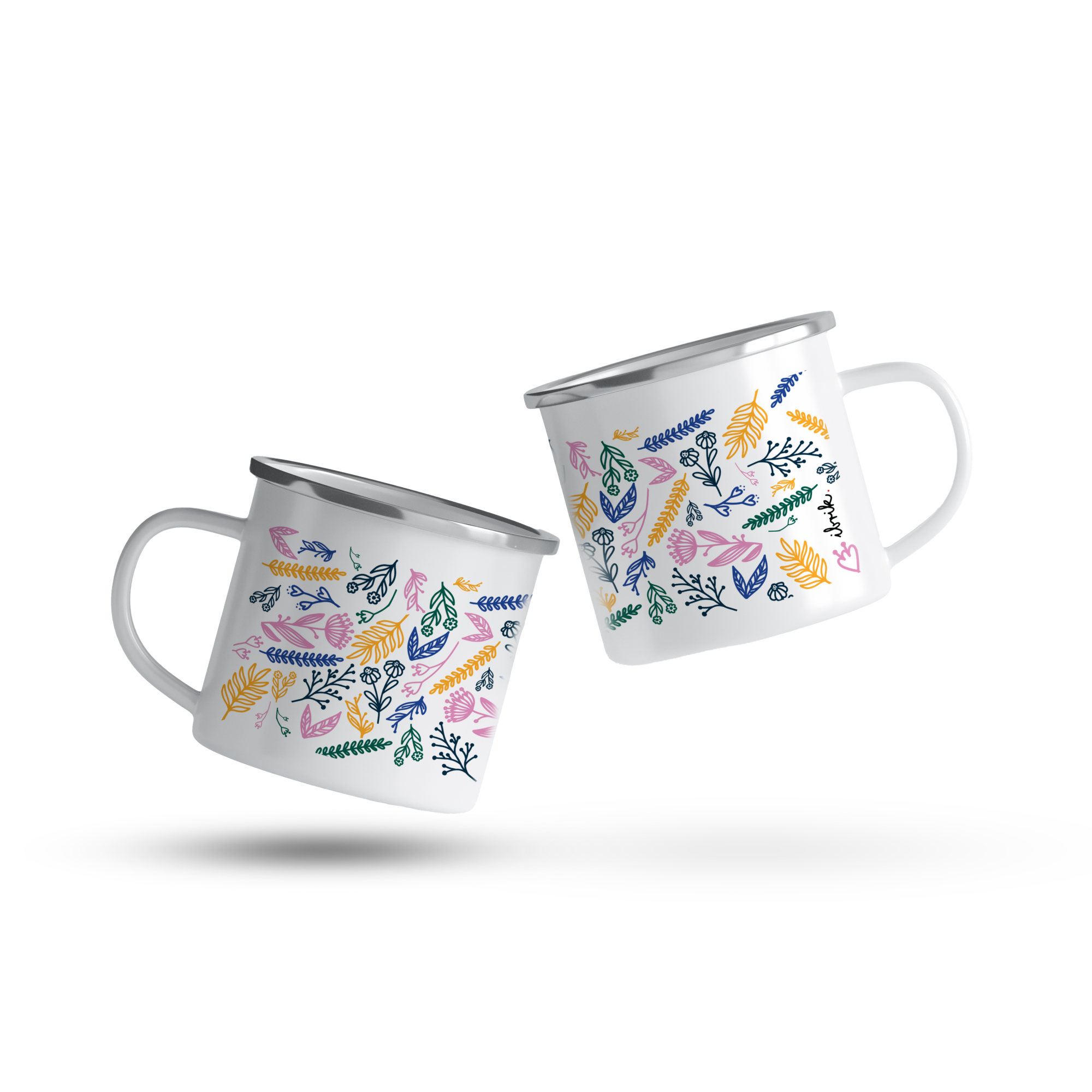 Cană emailată de calitate cu o capacitate de 360 ml. Grafica este unică si desenată manual.