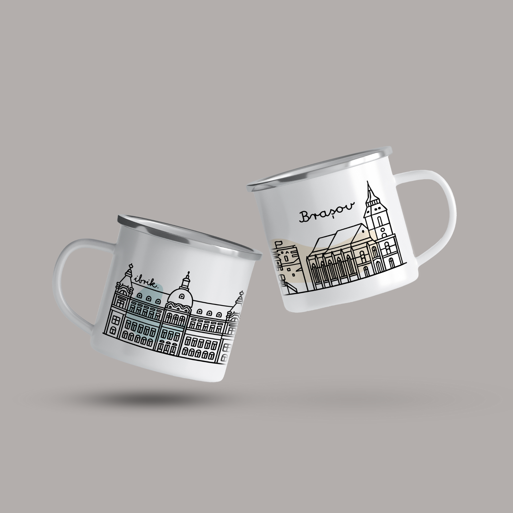 Cană emailată "Brașov", alb, ibrik, 360 ml