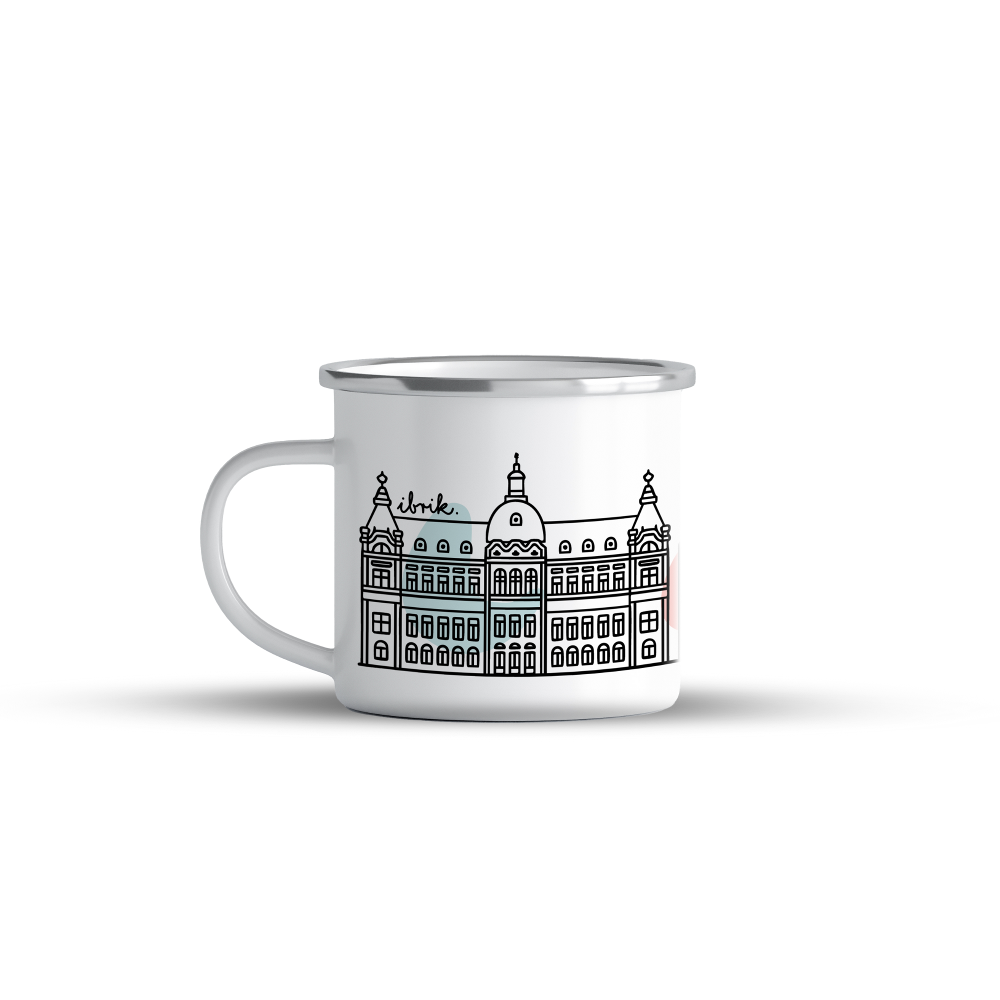Cană emailată „Brașov”, alb, ibrik, 360 ml