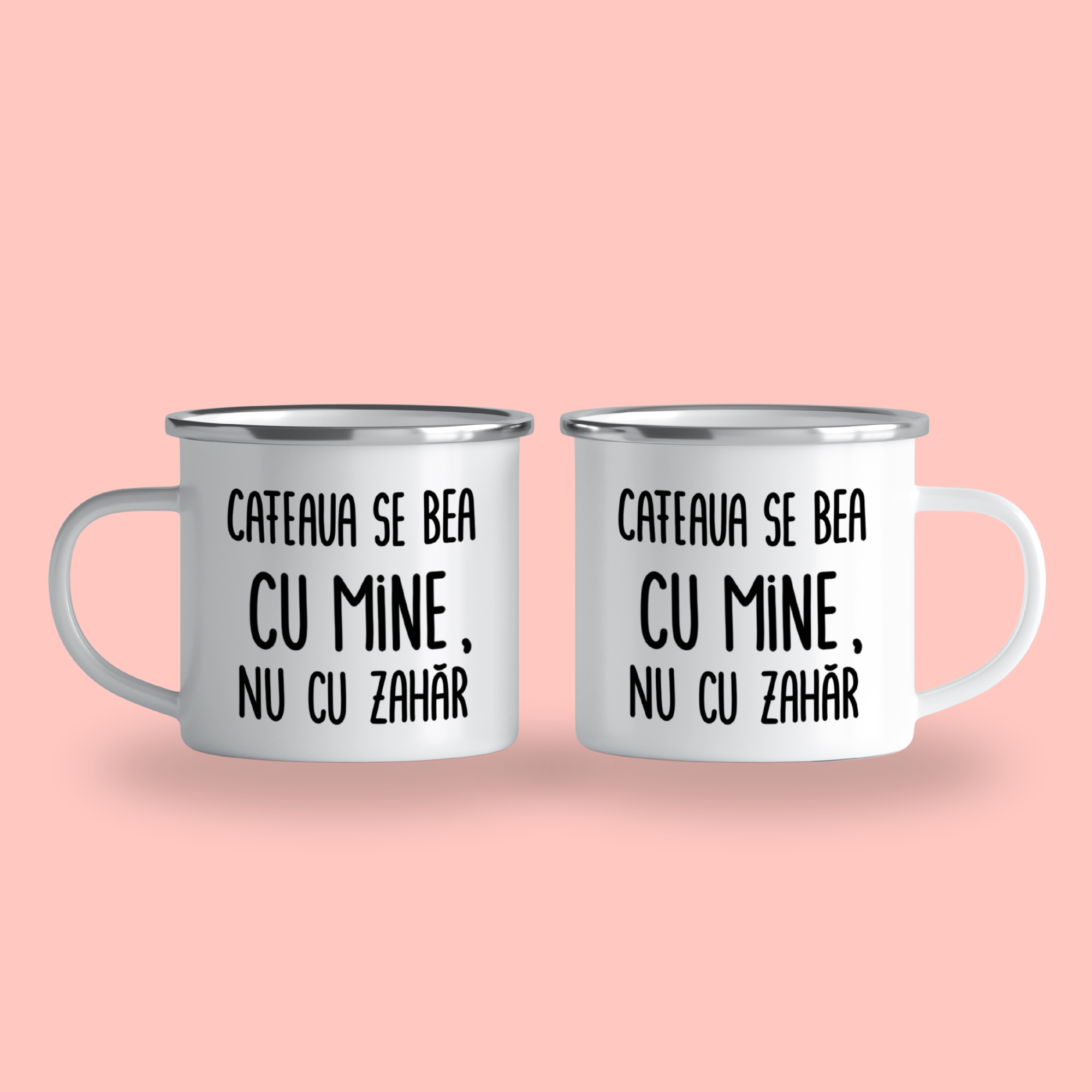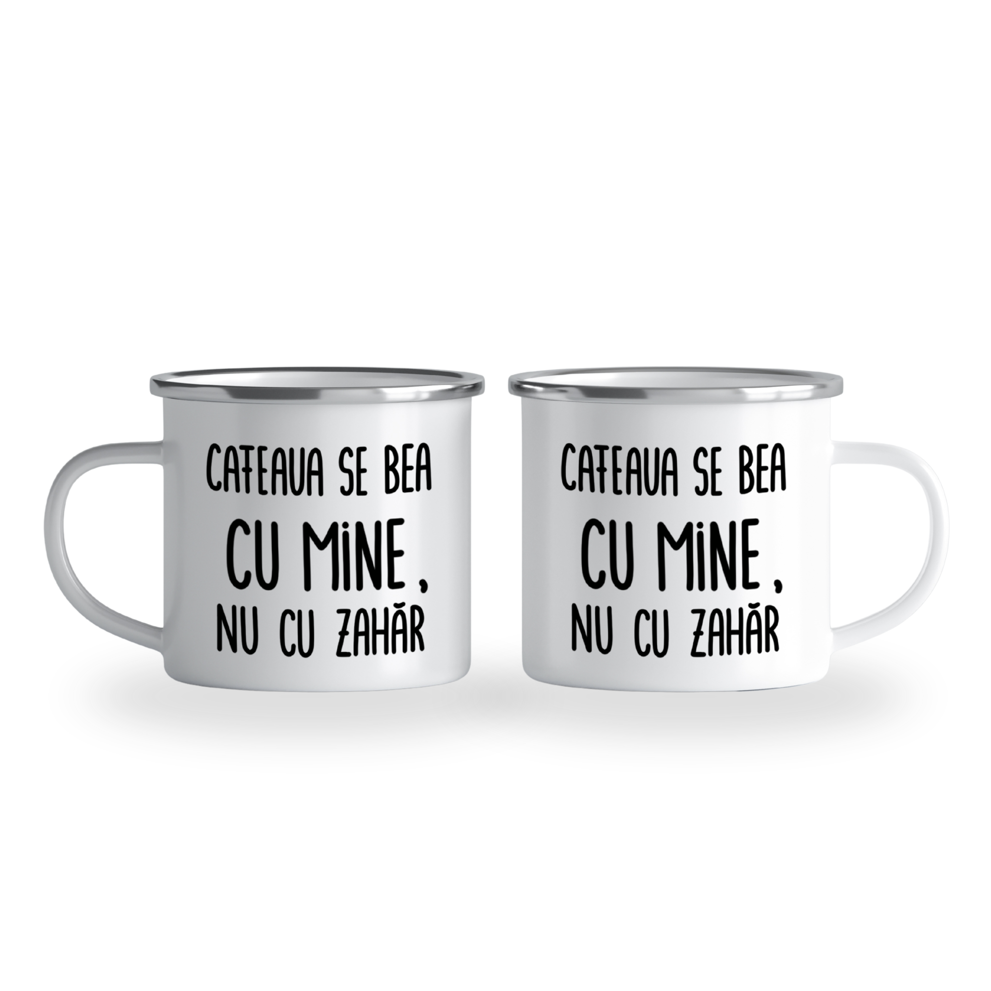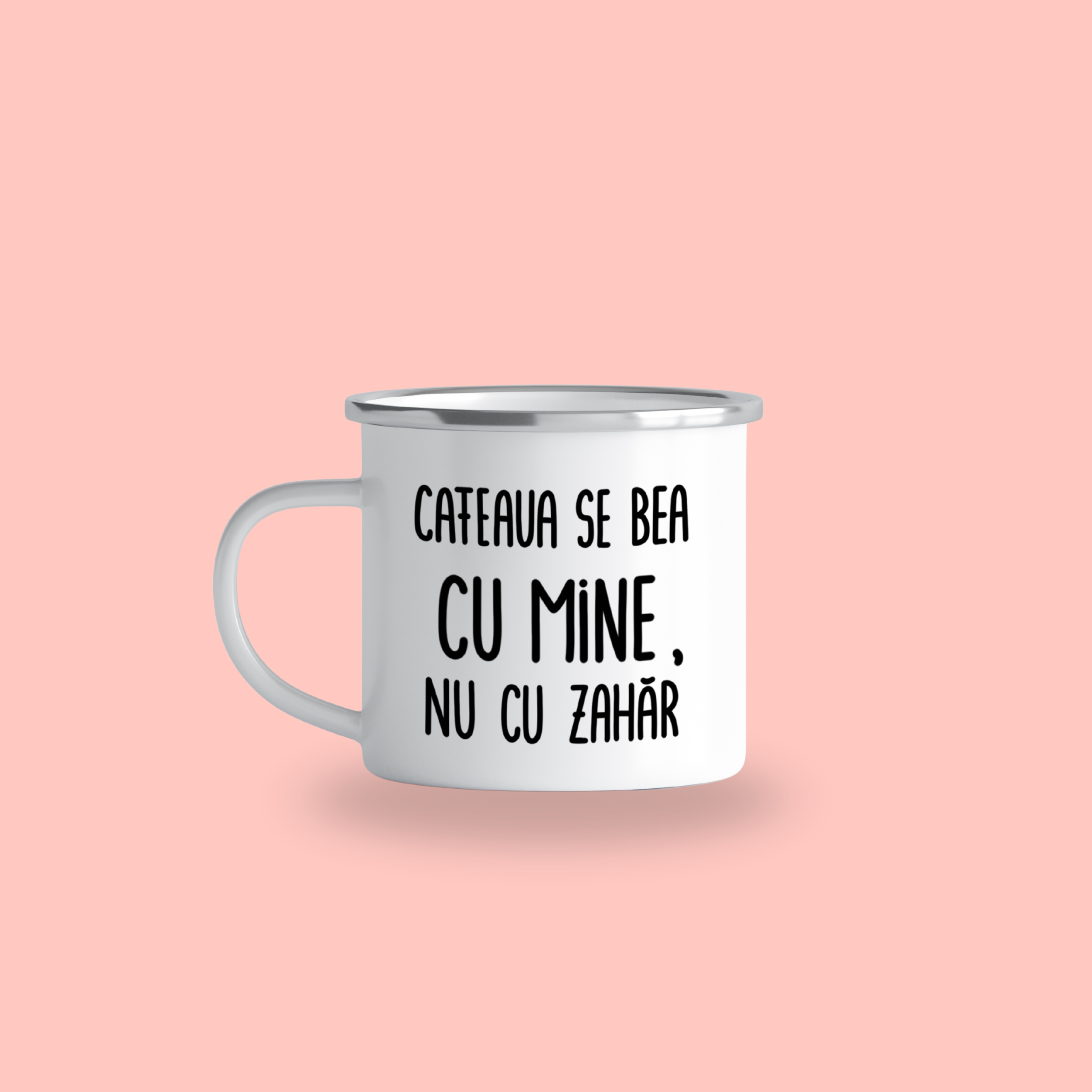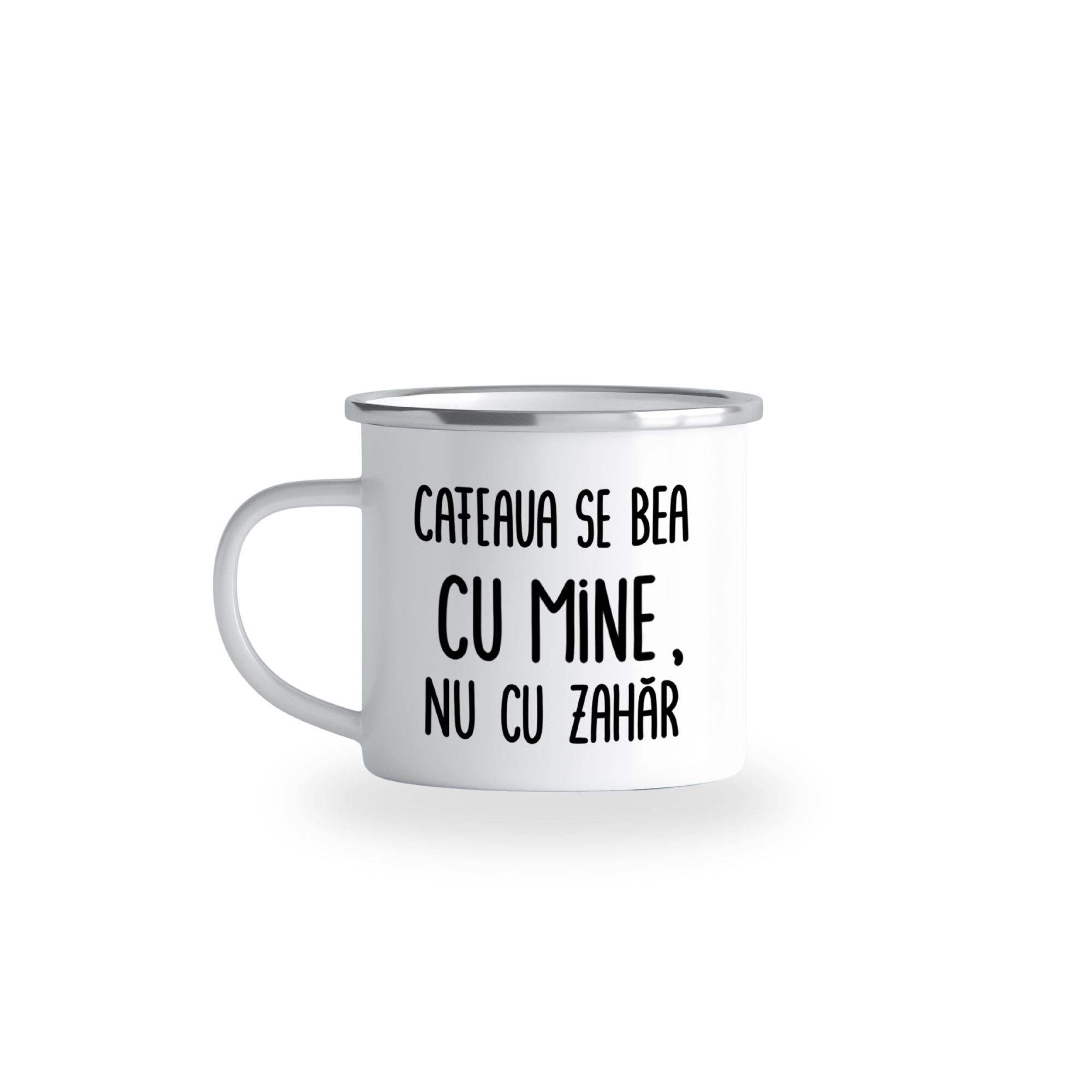 Cană emailată „Cafeaua se bea cu mine, nu cu zahăr”, alb, ibrik, 360 ml