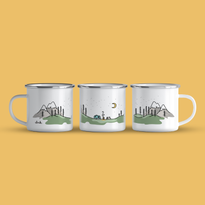 Cană emailată de calitate cu o capacitate de 360 ml. Grafica este unică si desenată manual.