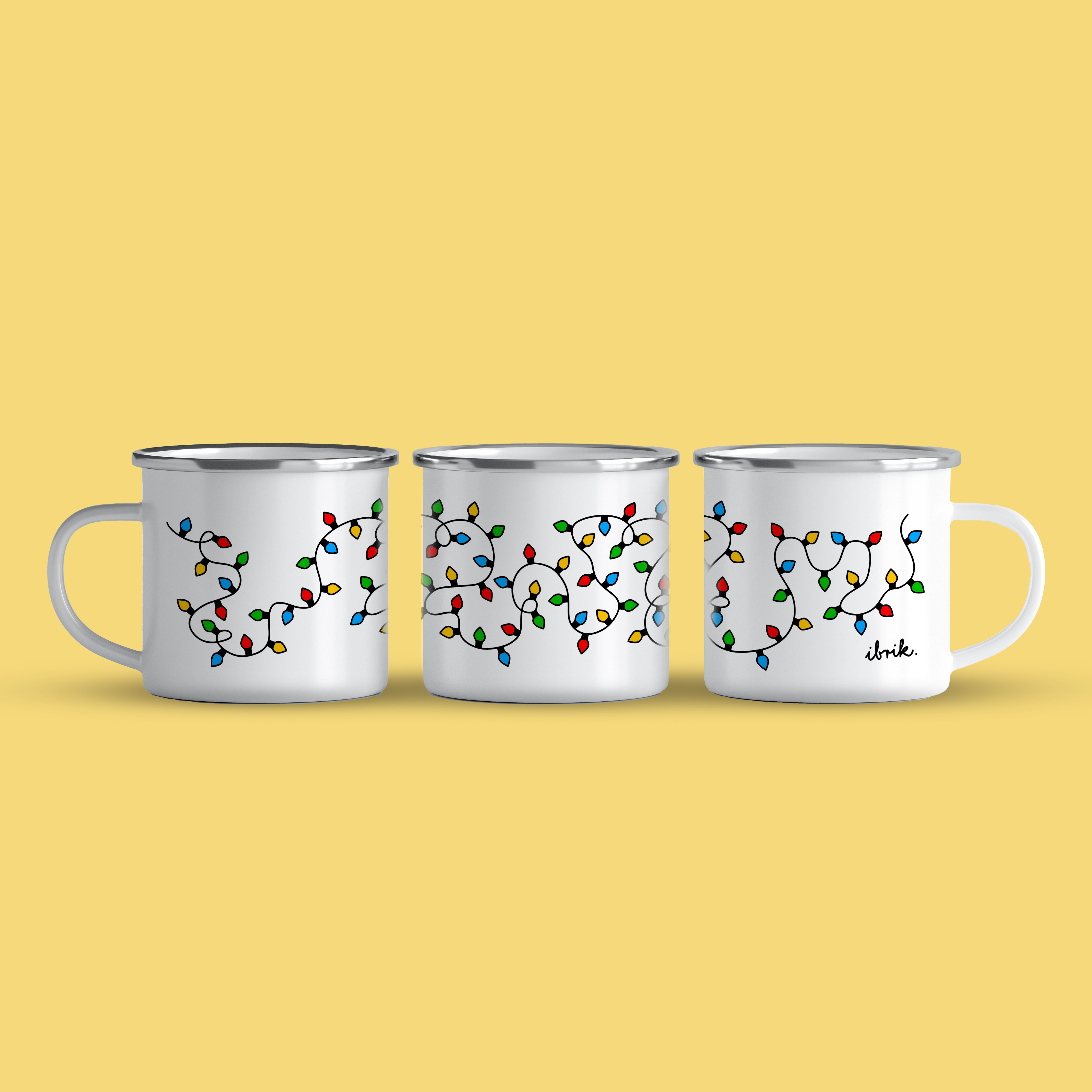 Cană emailată Christmas lights, alb, ibrik, 360 ml