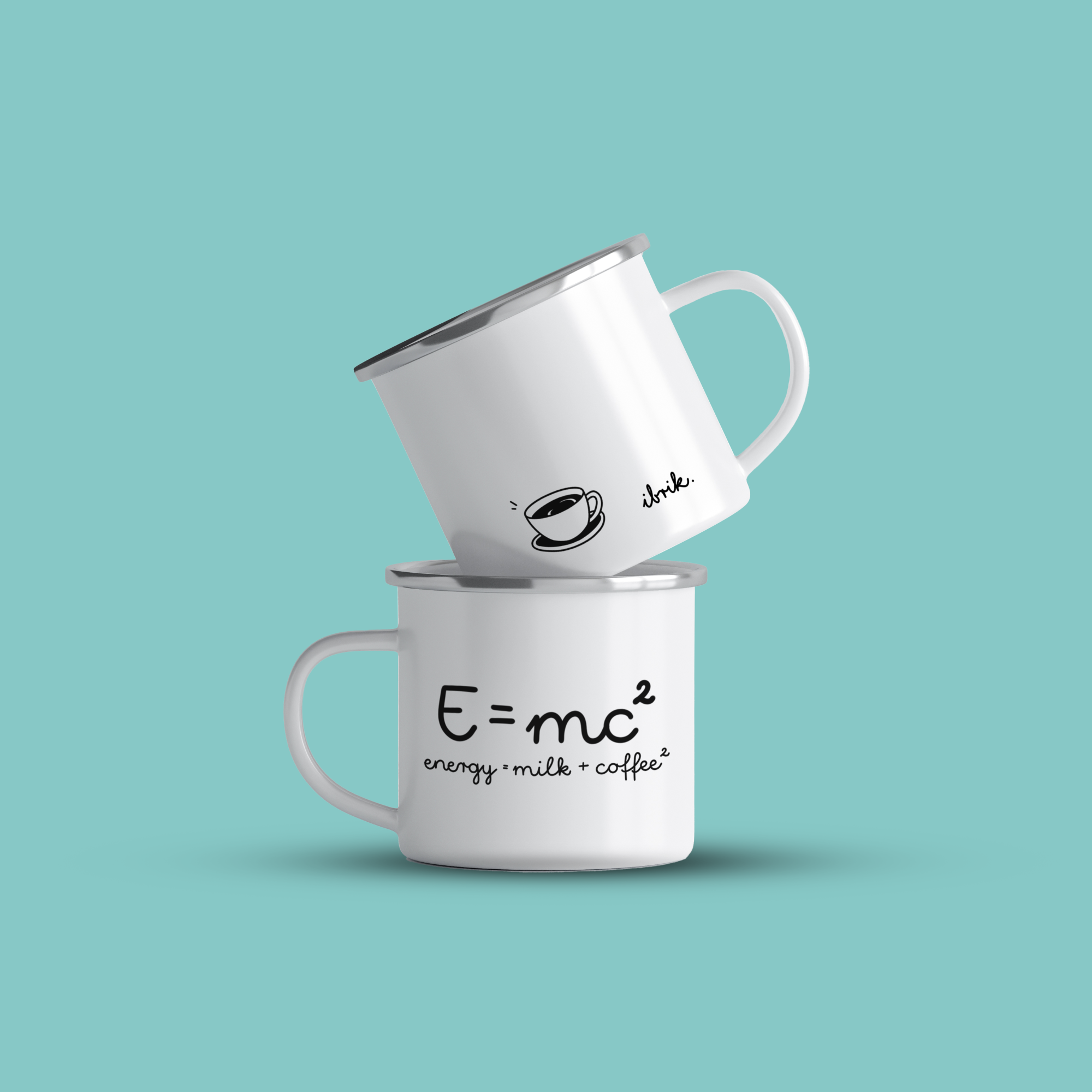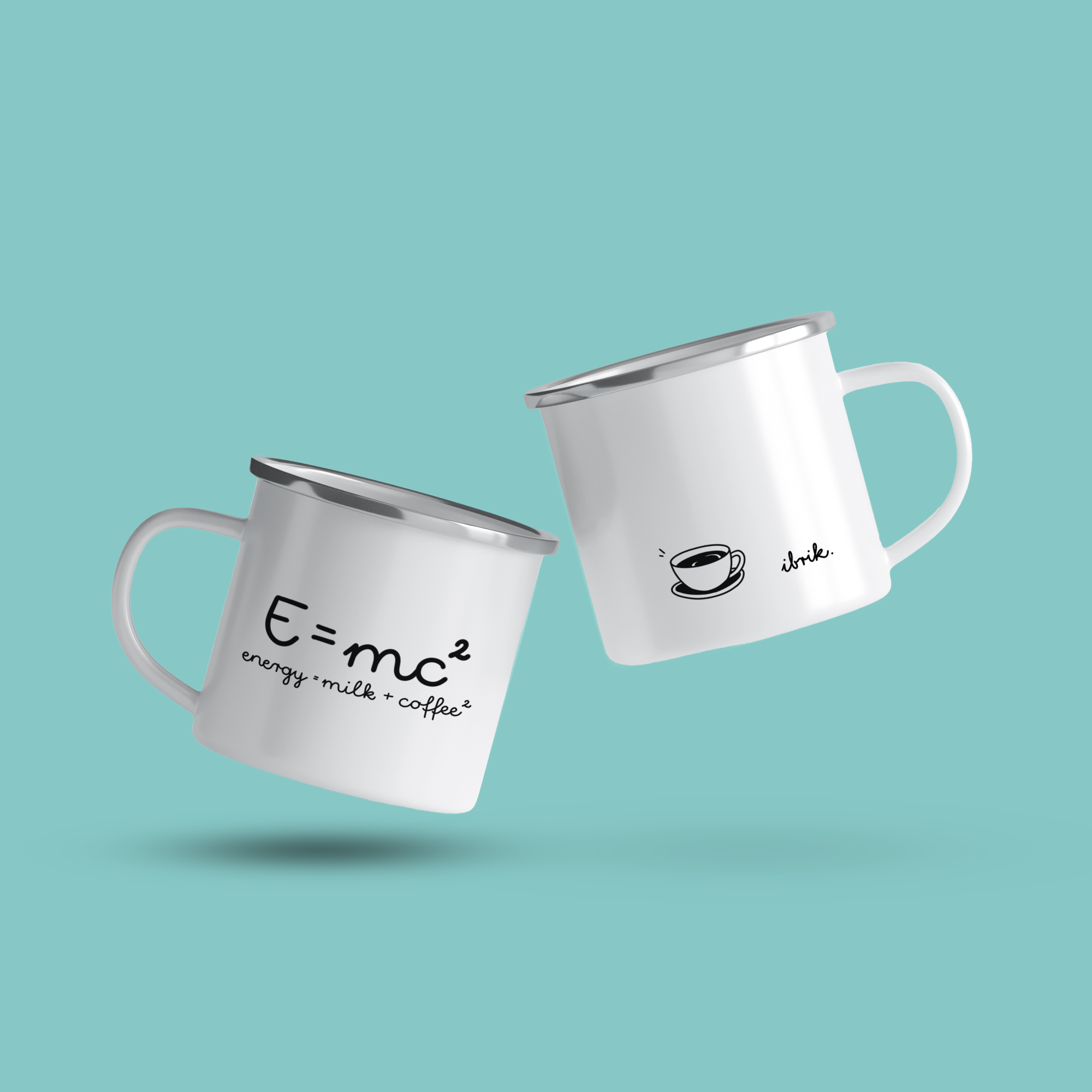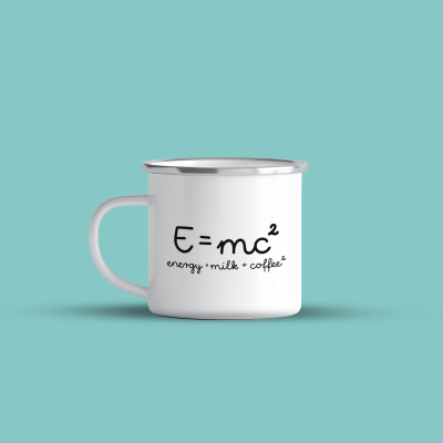 Cană emailata Coffee relativity, alb, ibrik, 360 ml