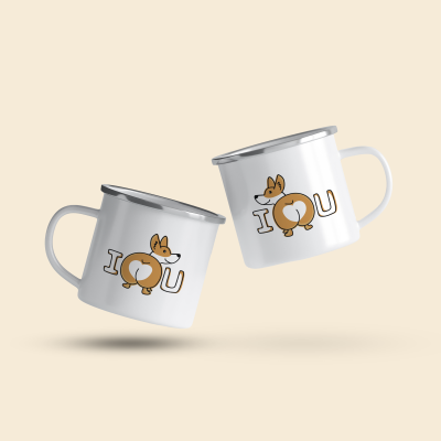 Cană emailată Corgi, alb, ibrik, 360 ml
