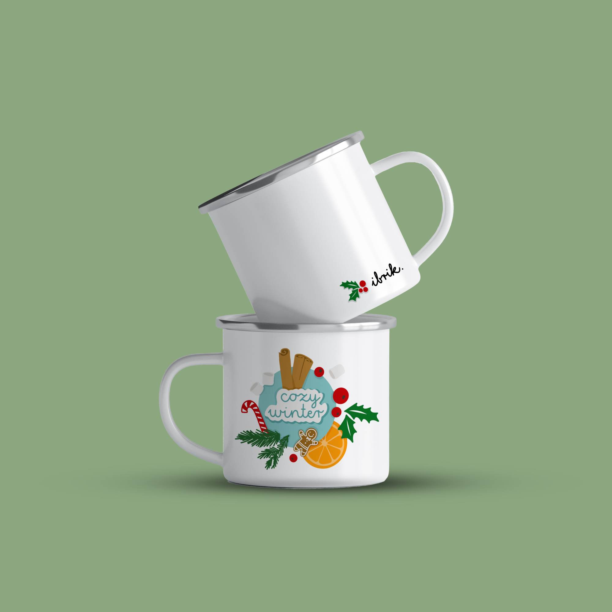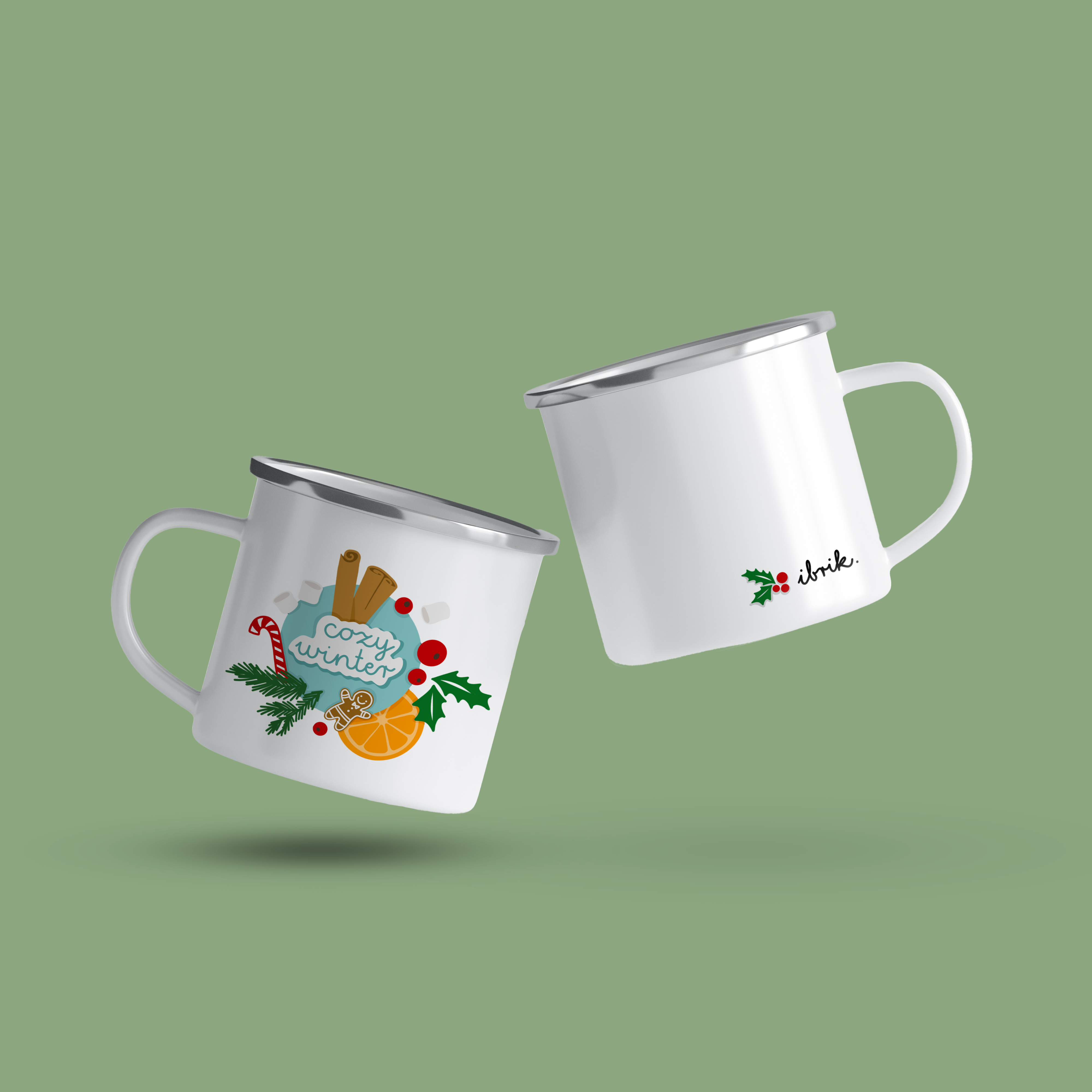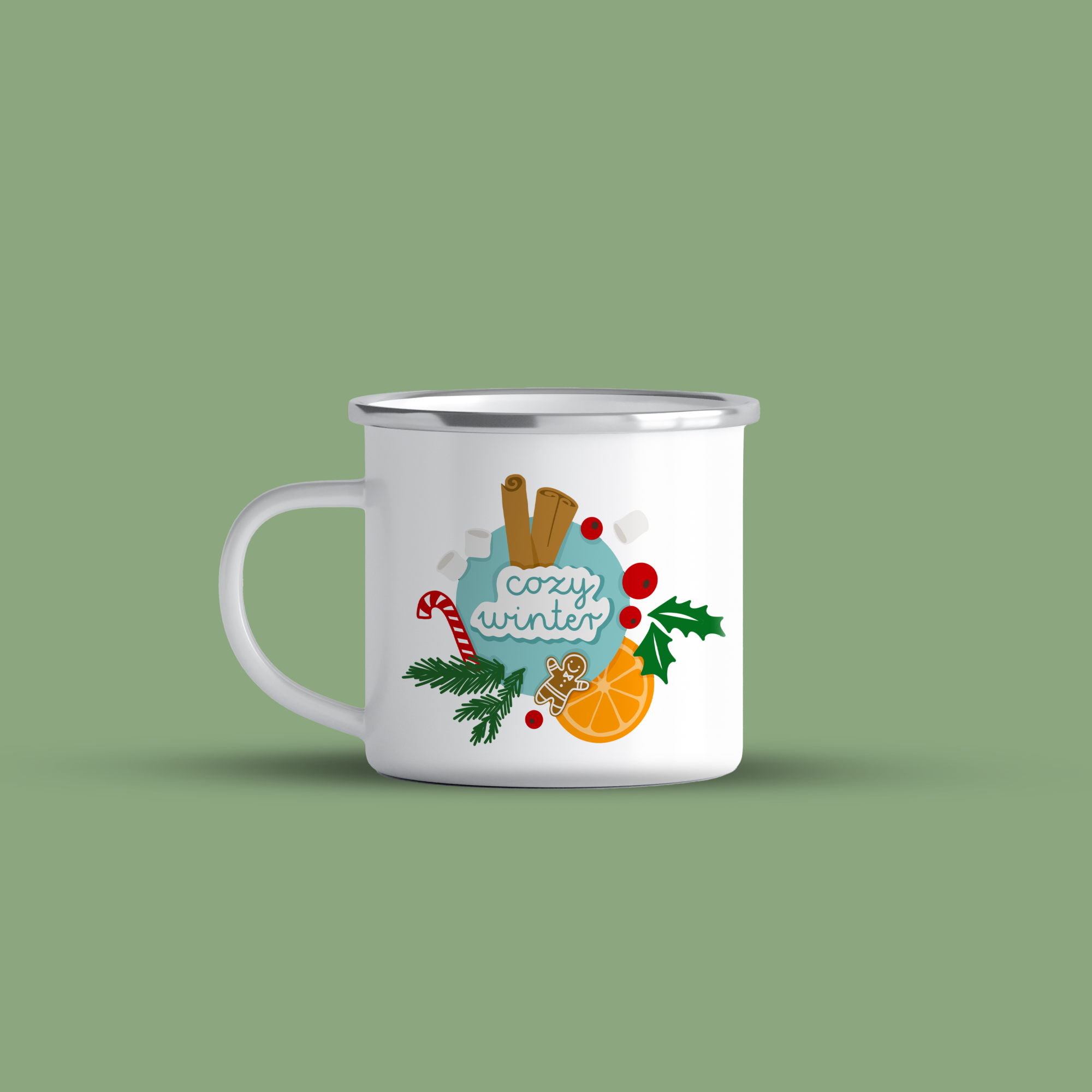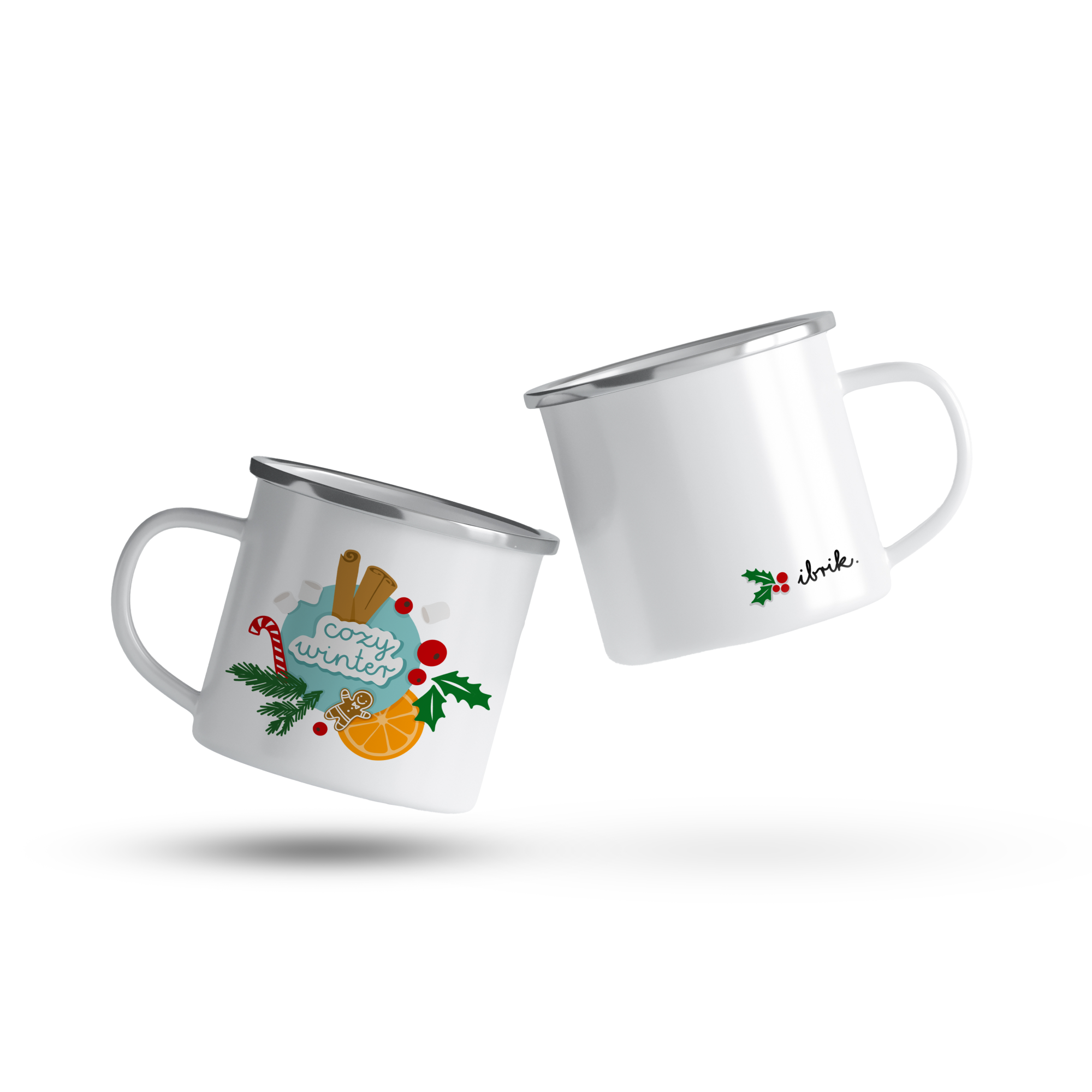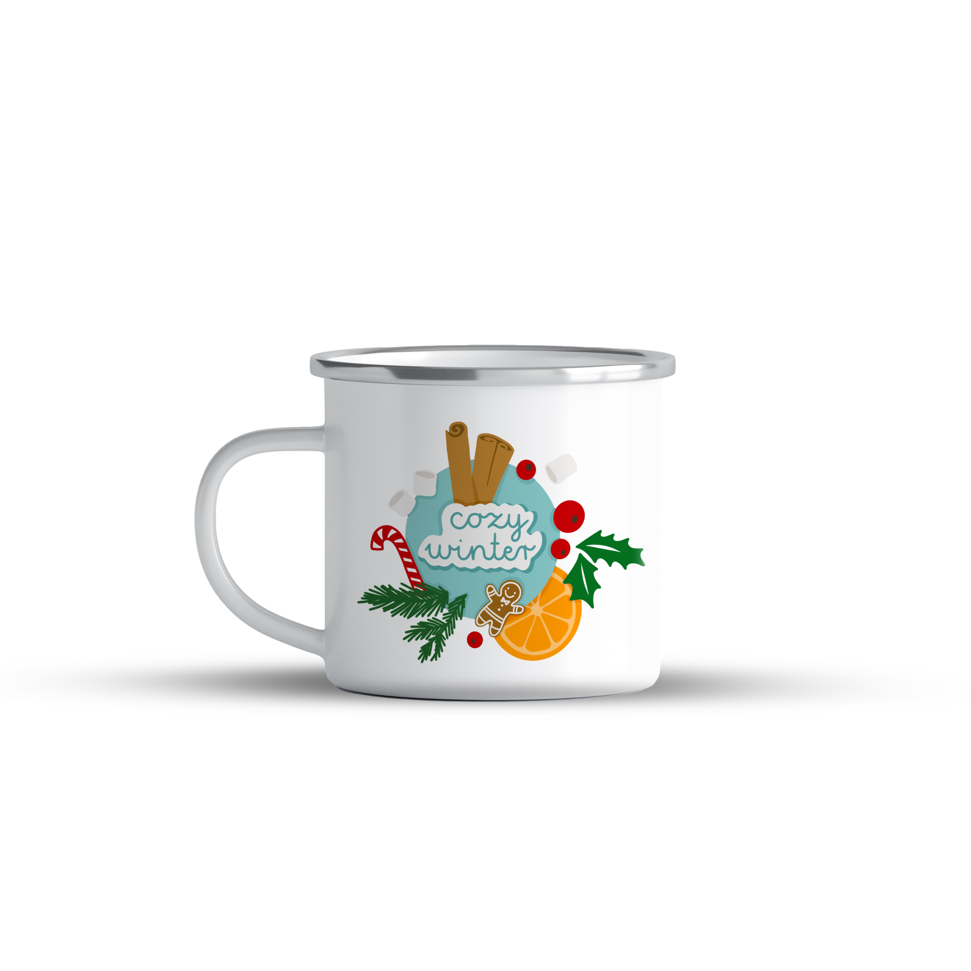 Cană emailată Cozy winter, alb, ibrik, 360 ml