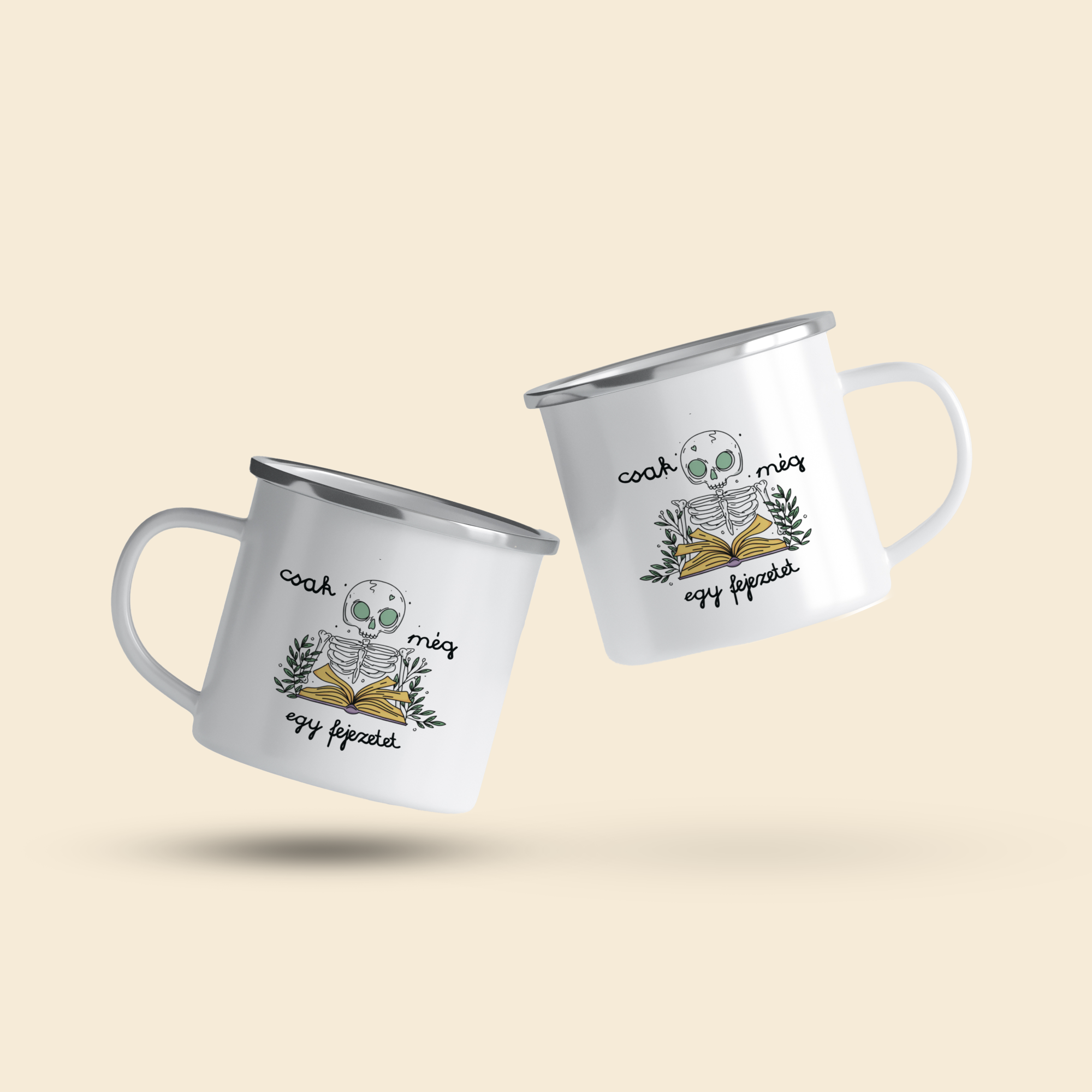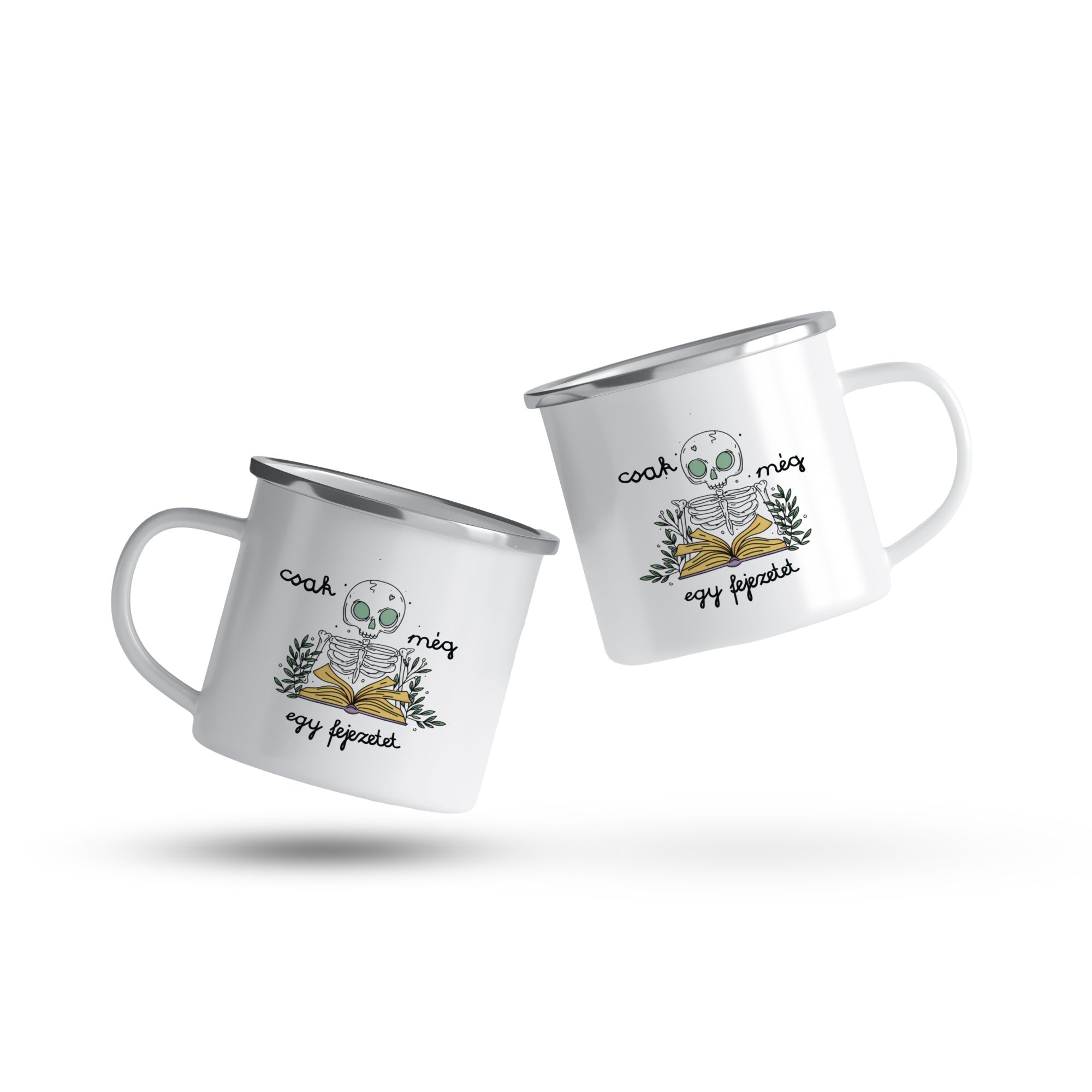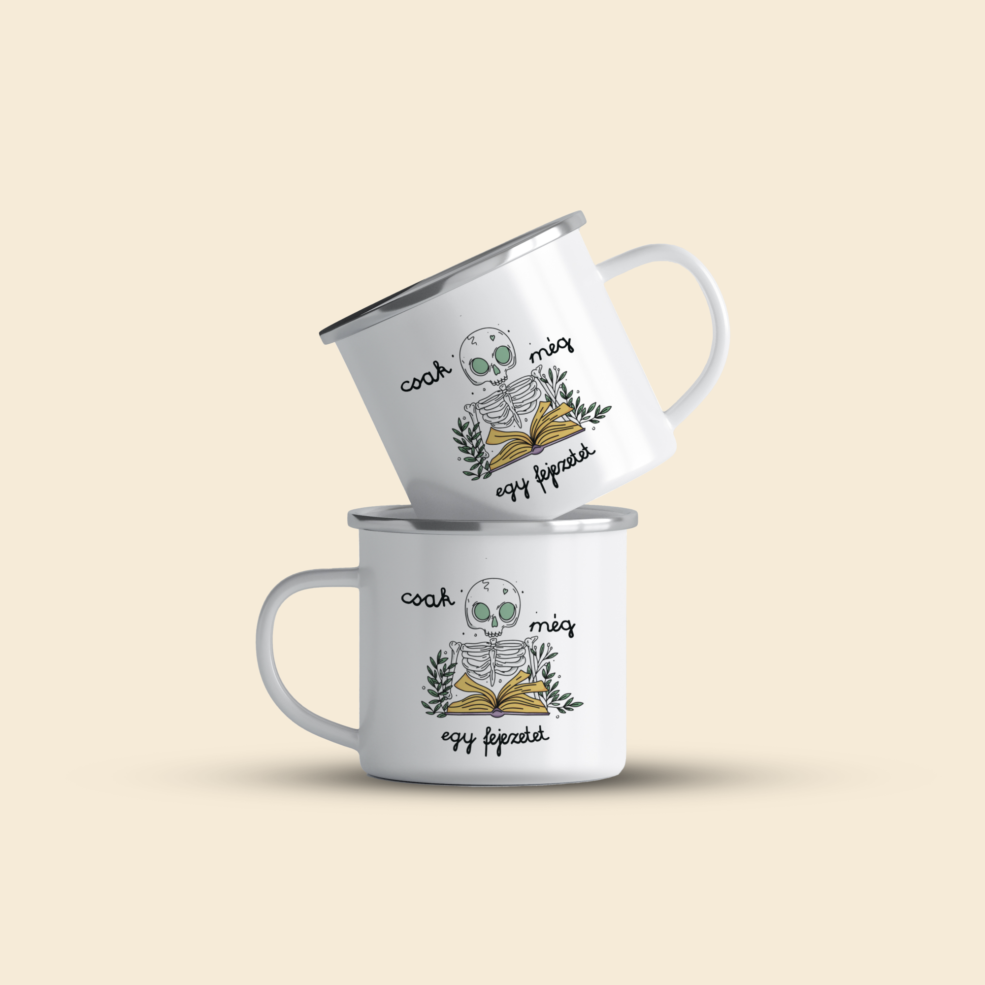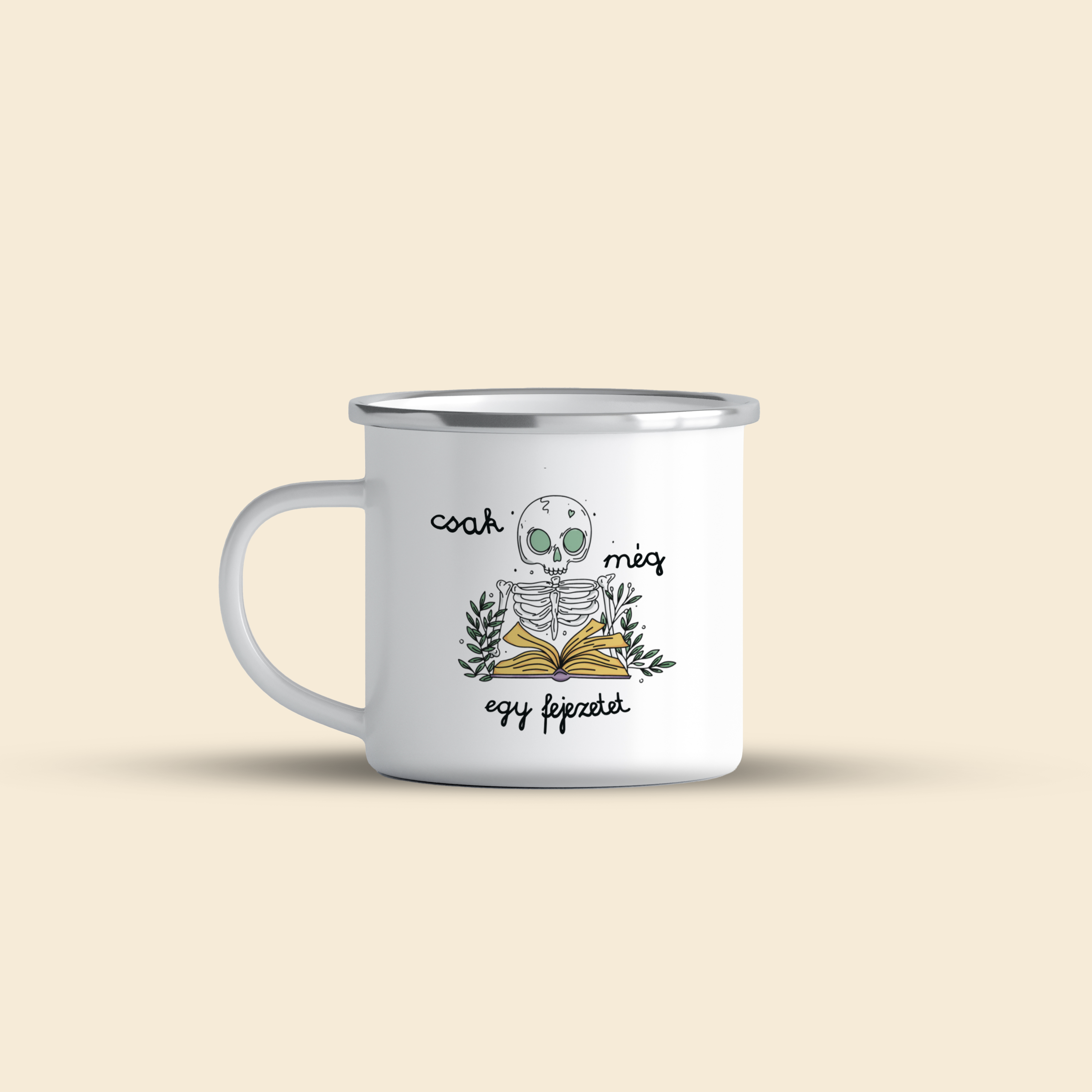 Cană emailată „csak még egy fejezet”, alb, ibrik, 360 ml