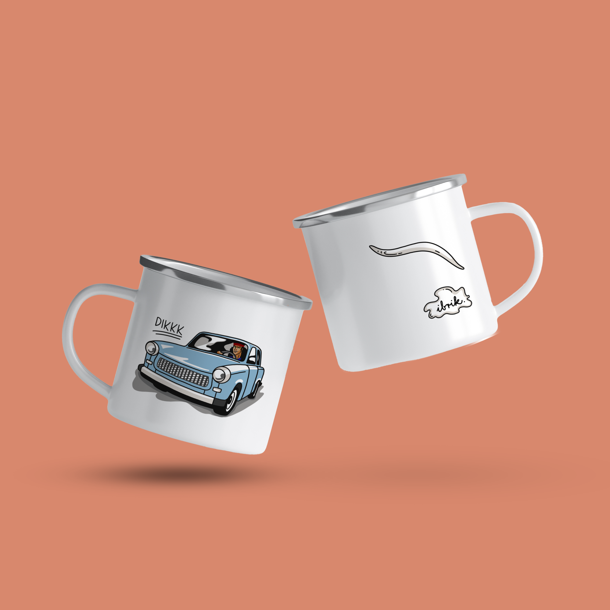Cană emailată de calitate cu o capacitate de 360 ml. Grafica este unică si desenată manual.