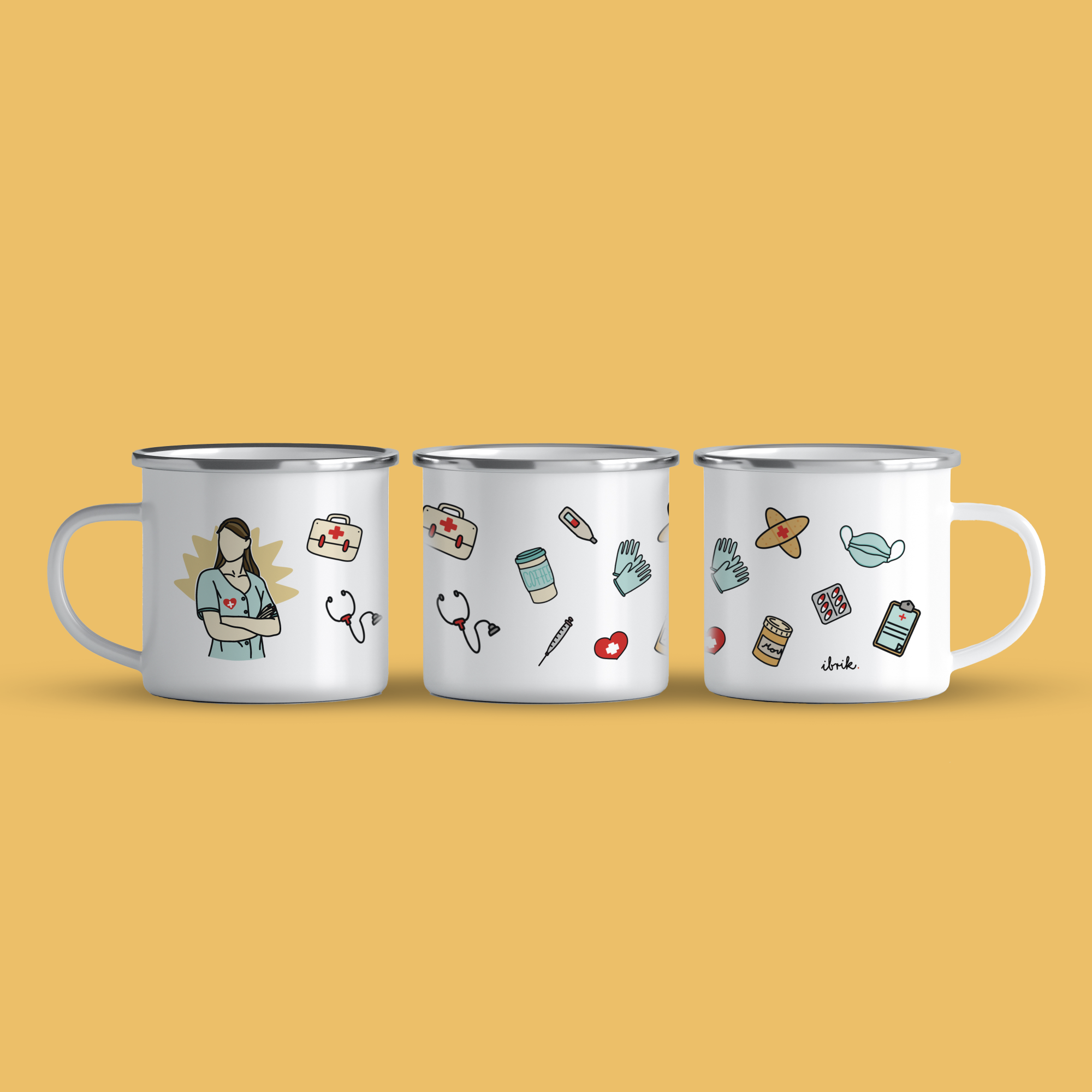 Cană emailată de calitate cu o capacitate de 360 ml. Grafica este unică si desenată manual.