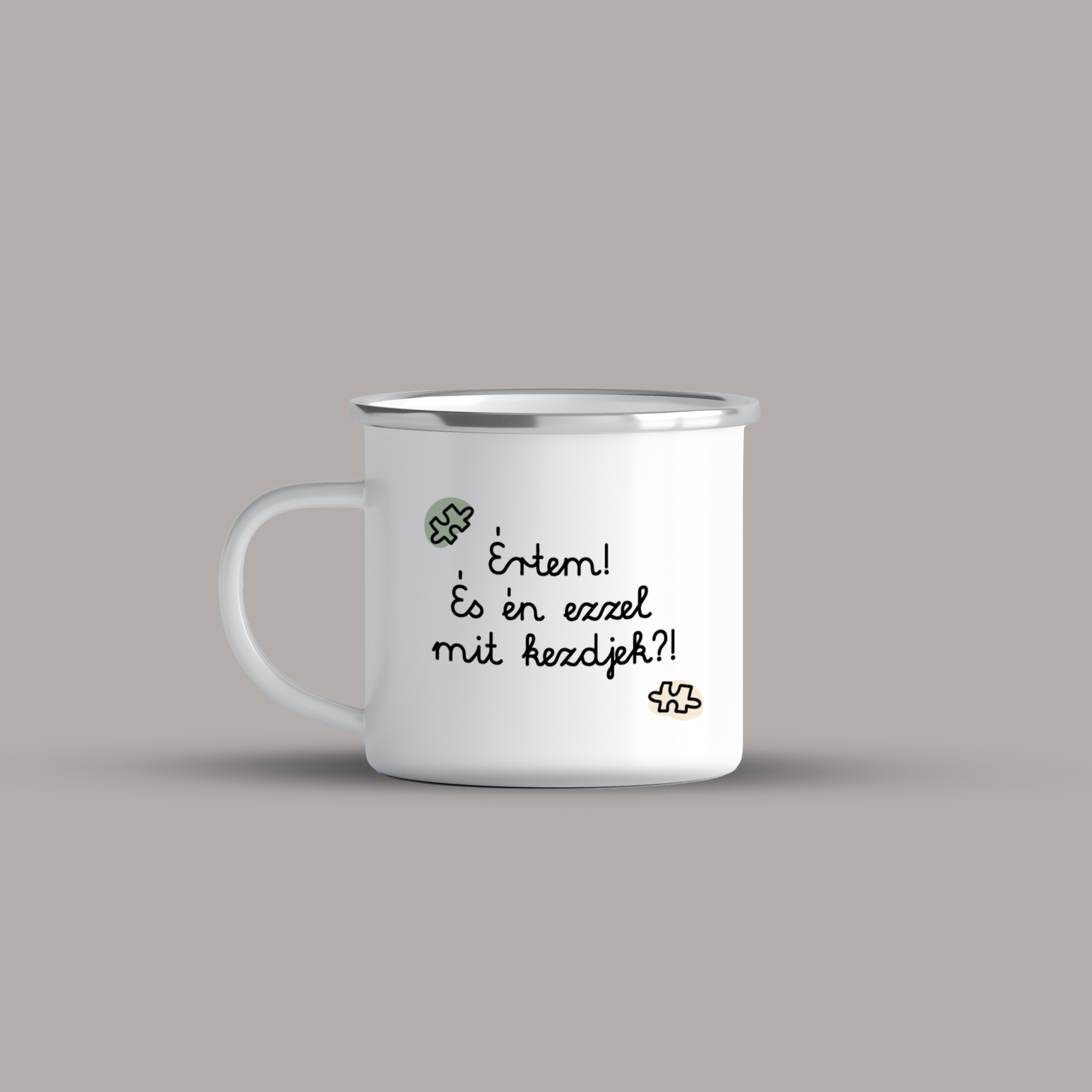 Cană emailată „Én ezzel mit kezdjek”, alb, ibrik, 360 ml
