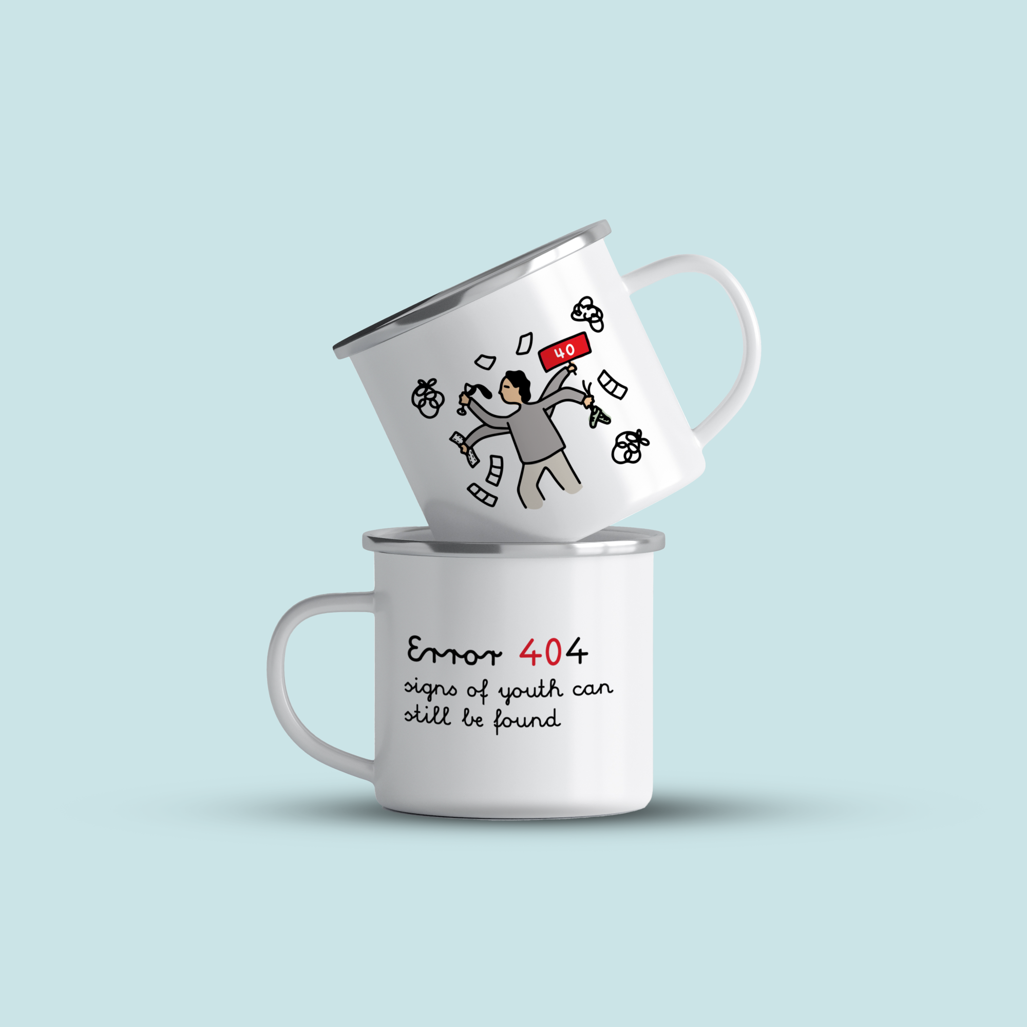 Cană emailată „error 404”, alb, ibrik, 360 ml
