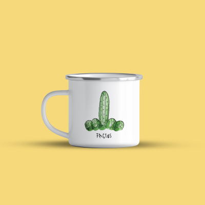 Cană emailată de calitate cu o capacitate de 360 ml. Grafica este unică si desenată manual.