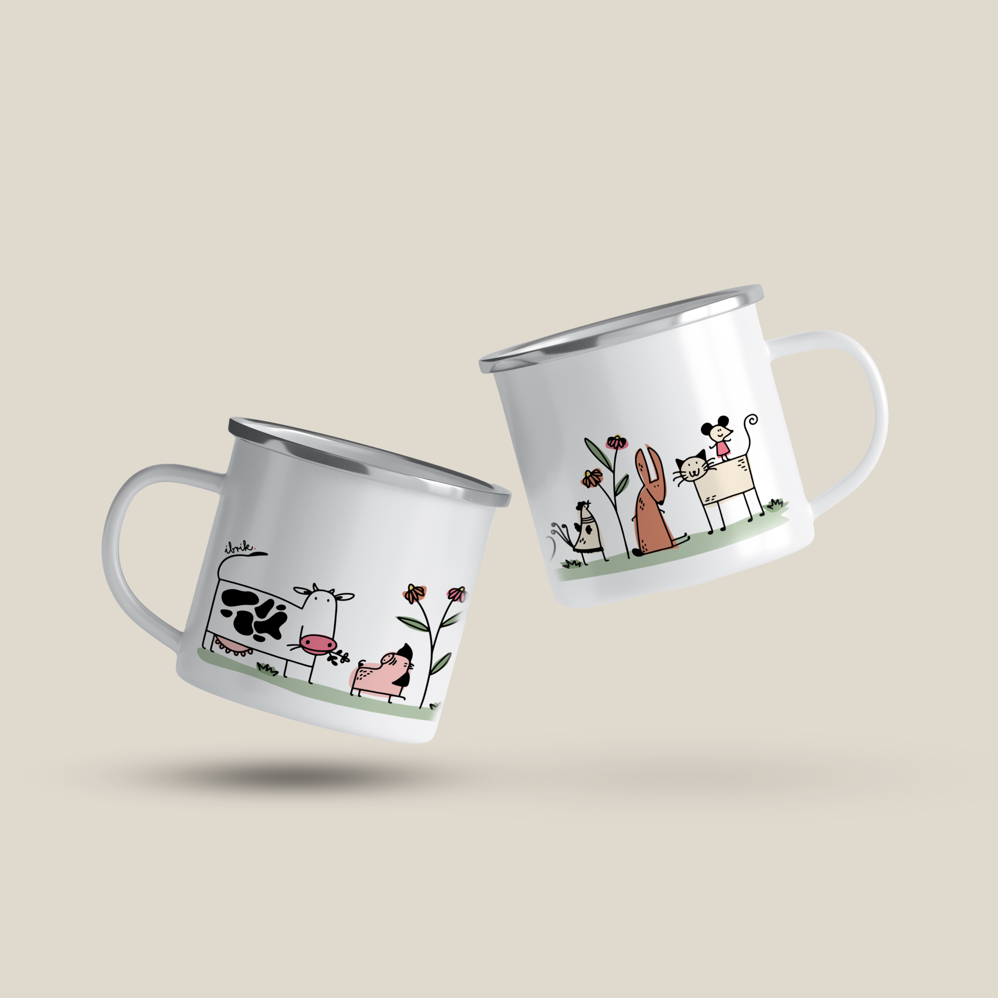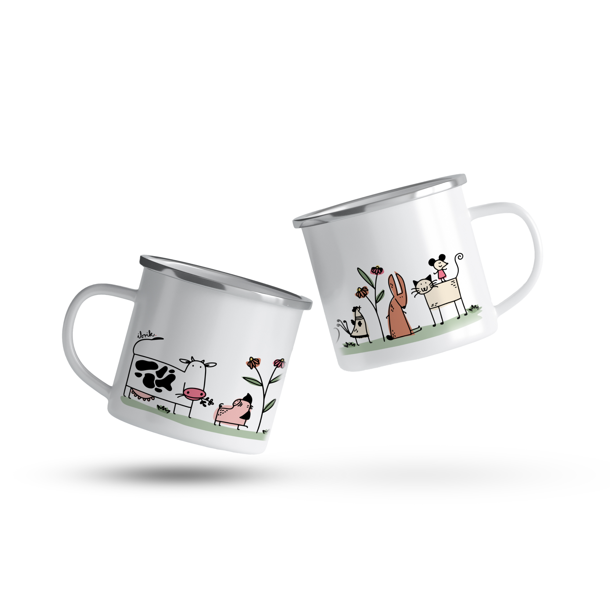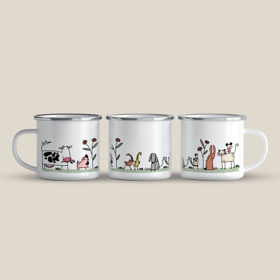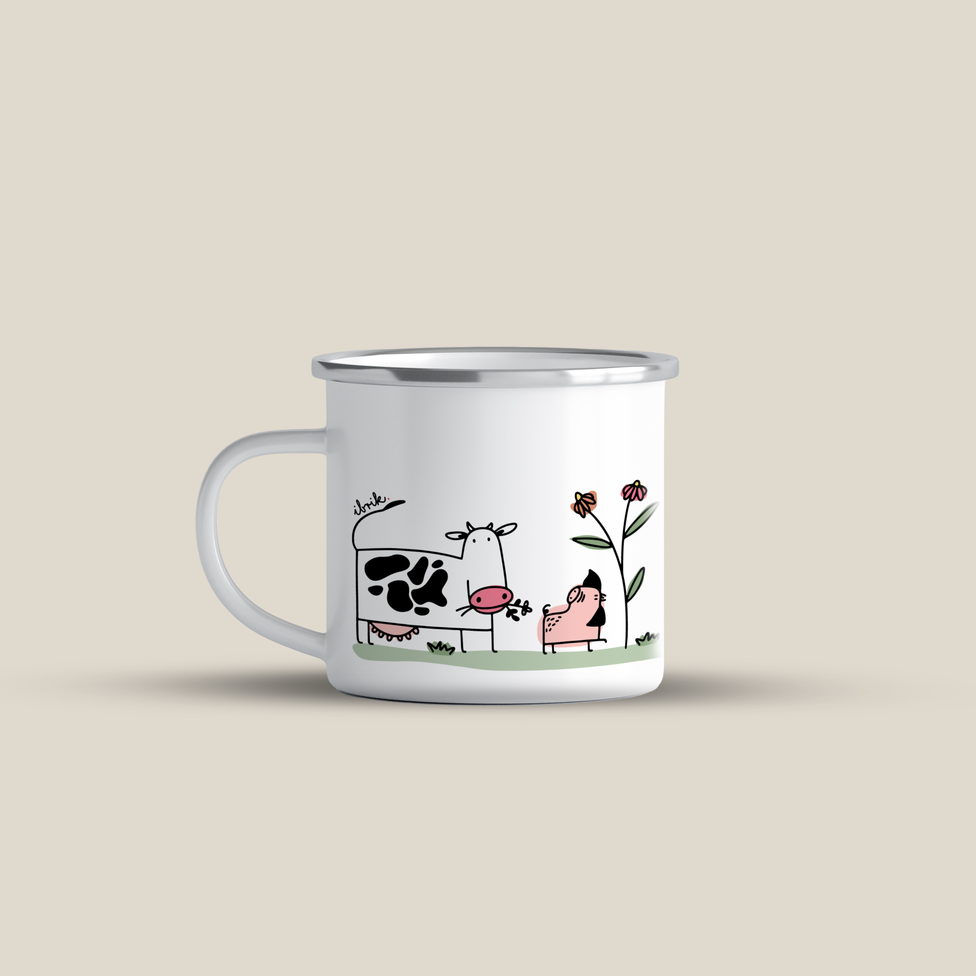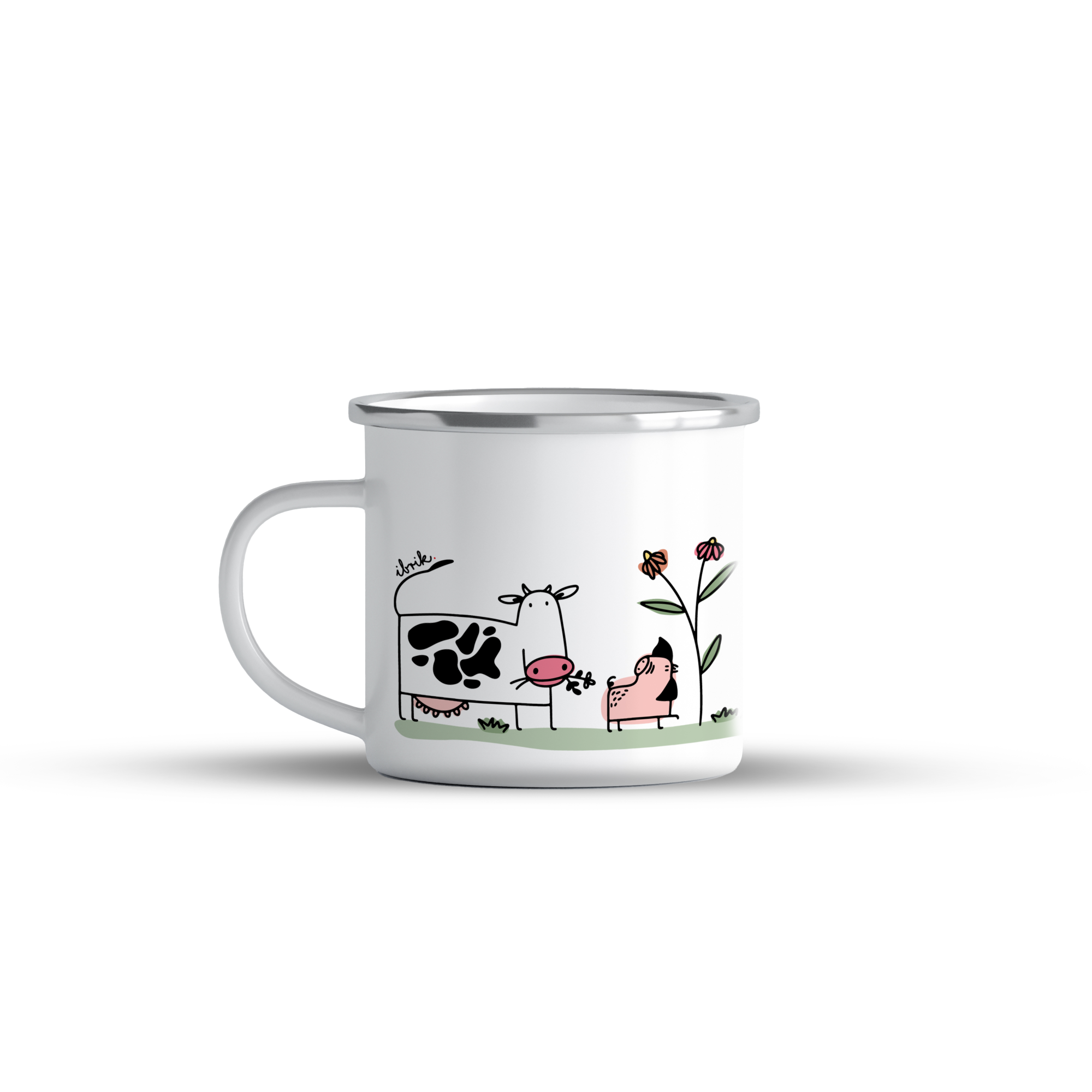 Cană emailată de calitate cu o capacitate de 360 ml. Grafica este unică si desenată manual.
