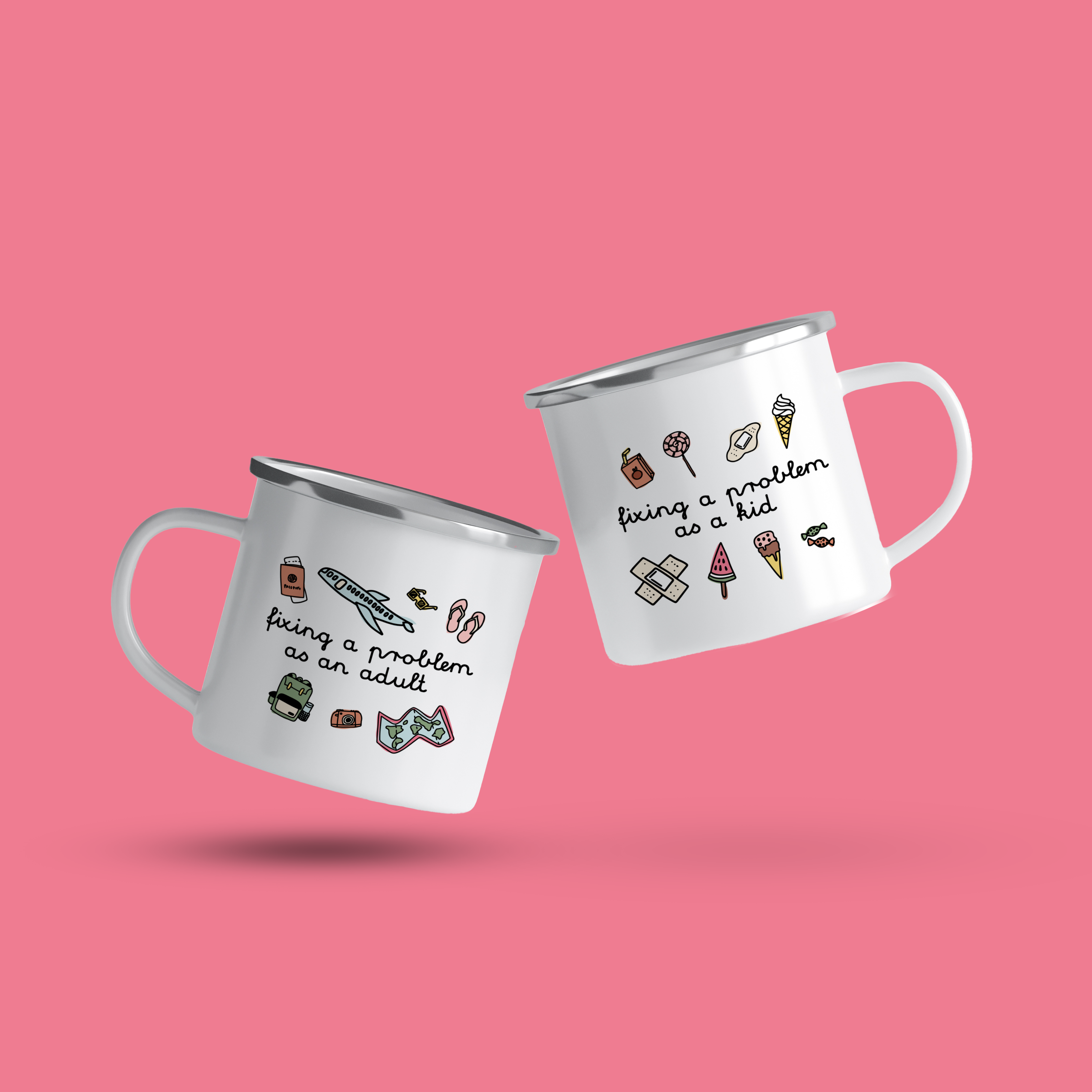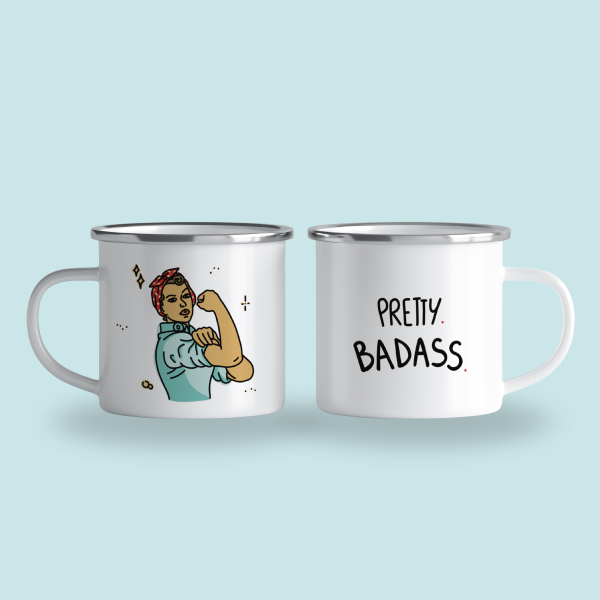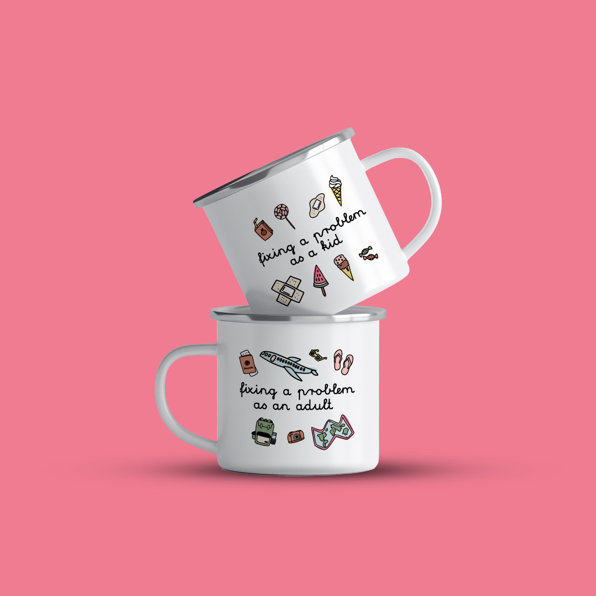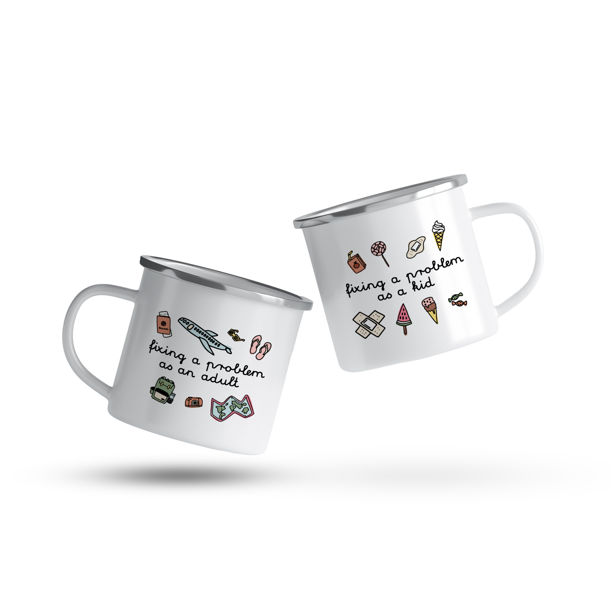 Cană emailată de calitate cu o capacitate de 360 ml. Grafica este unică si desenată manual.
