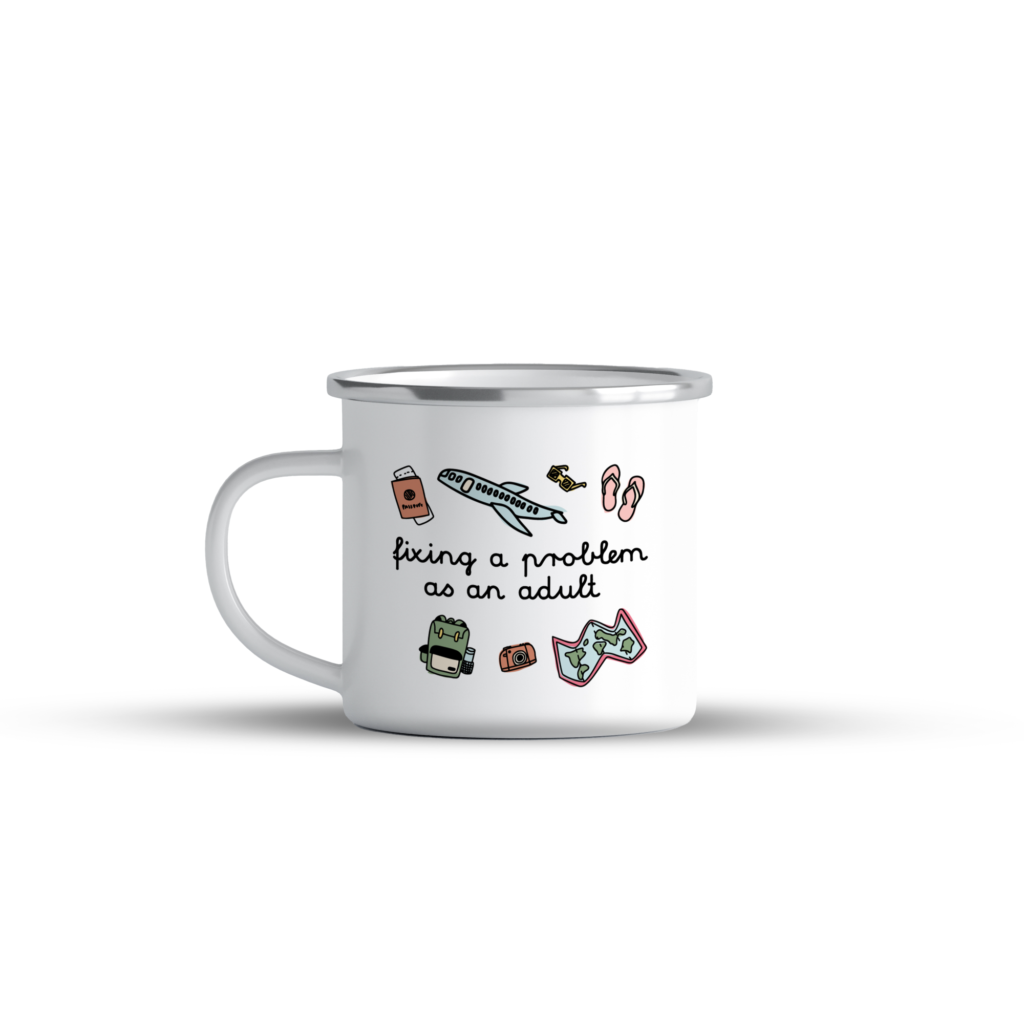 Cană emailată Fixing problems, alb, ibrik, 360 ml