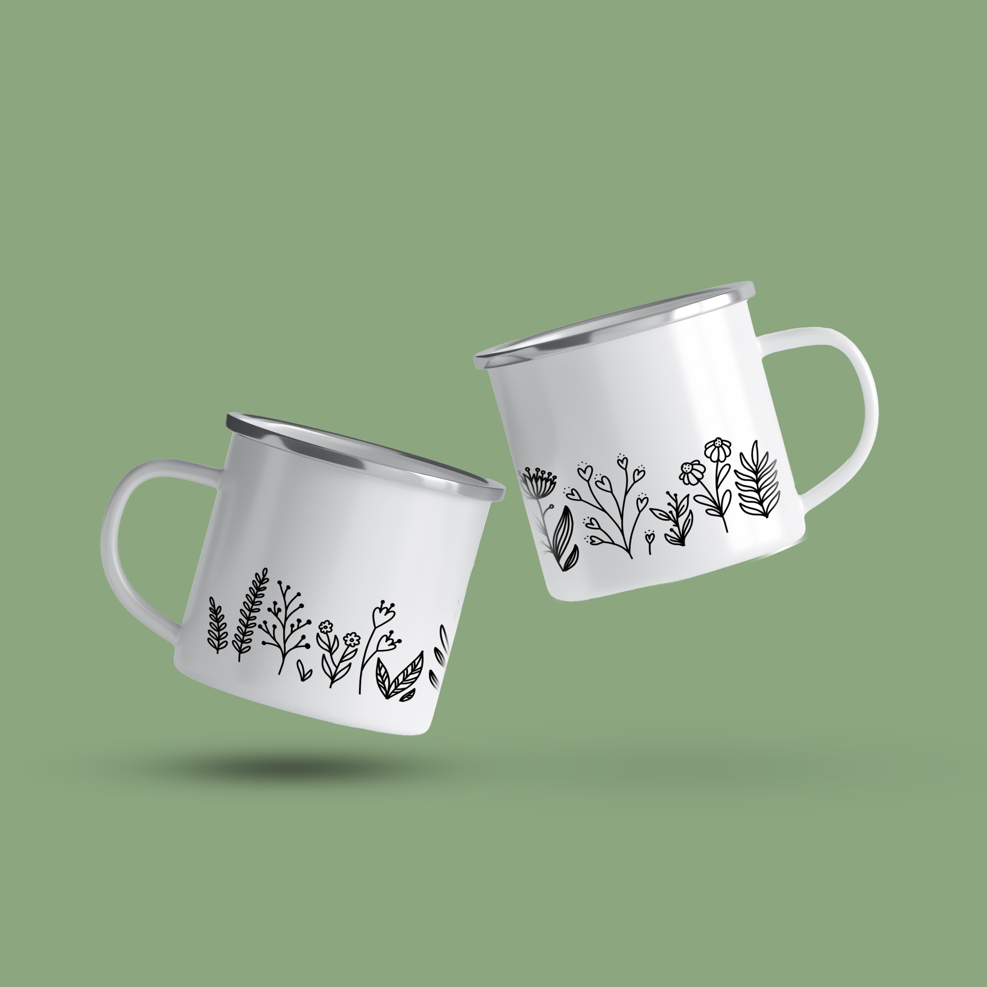 Cană emailată de calitate cu o capacitate de 360 ml. Grafica este unică si desenată manual.
