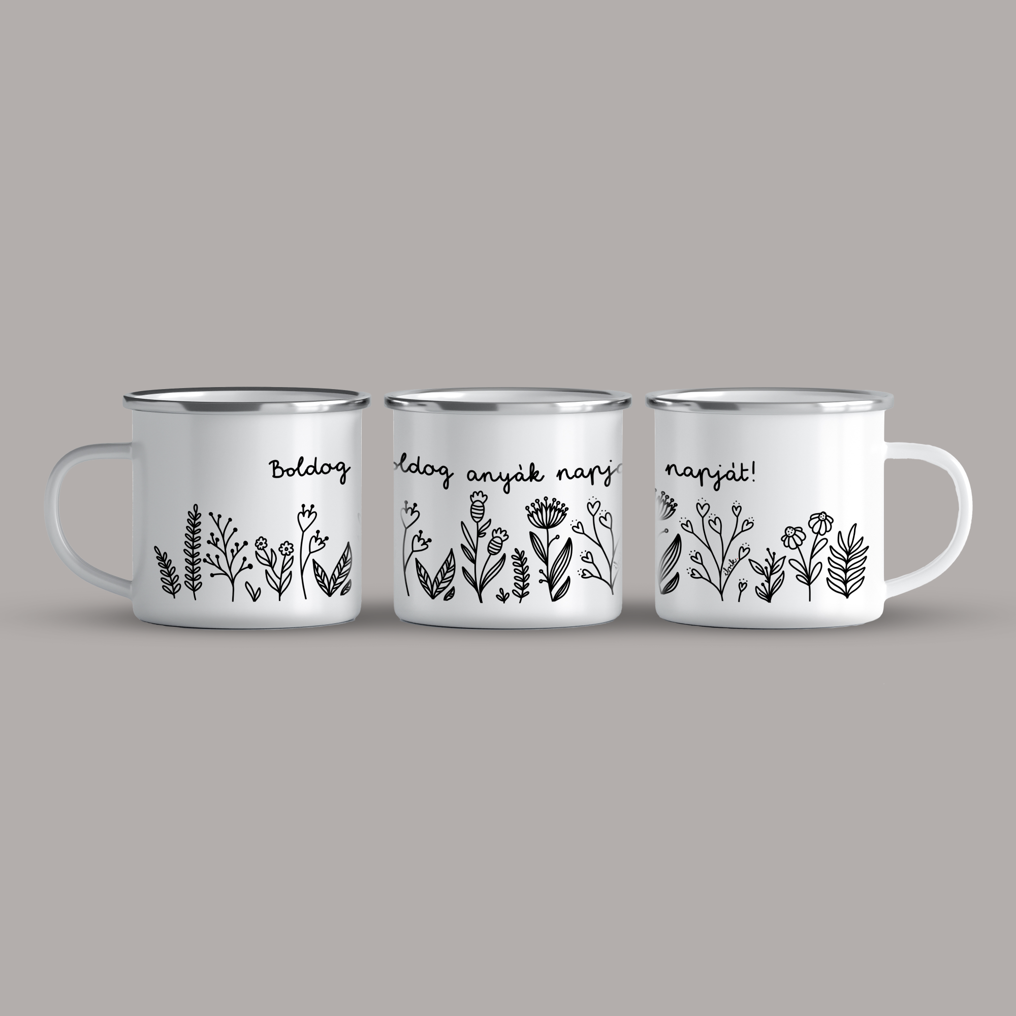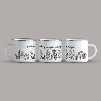 Cană emailată Flowers BW – anyák napja, alb, ibrik, 360 ml