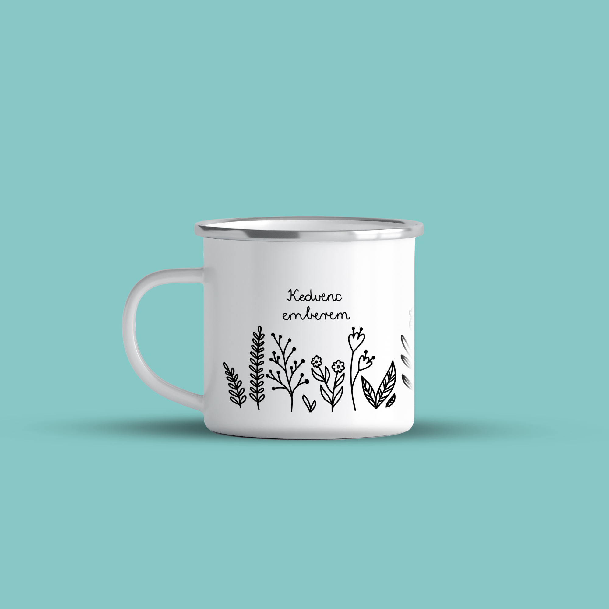 Cană emailată Flowers BW – kedvenc emberem, alb, ibrik, 360 ml