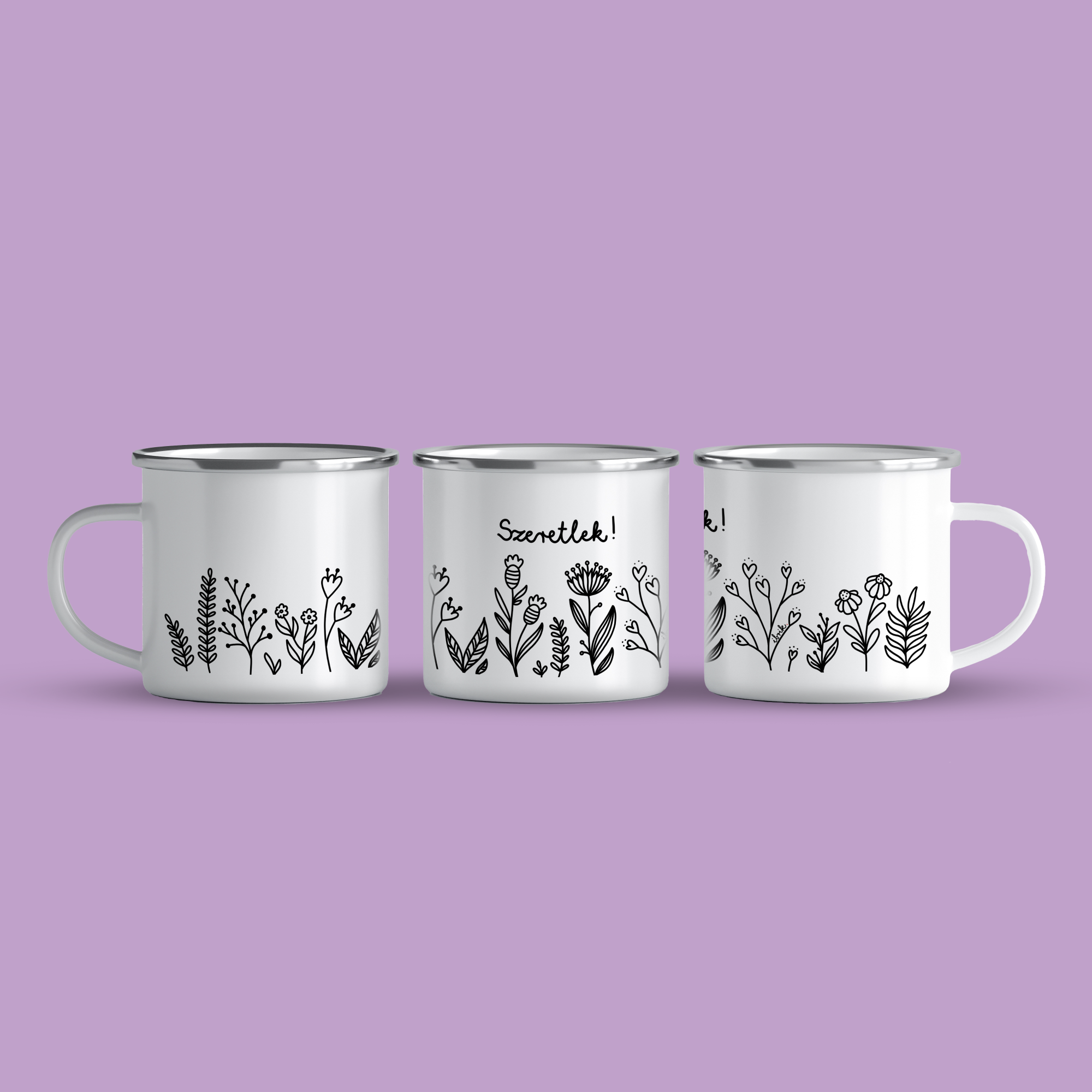 Cană emailată Flowers BW – Szeretlek, alb, ibrik, 360 ml