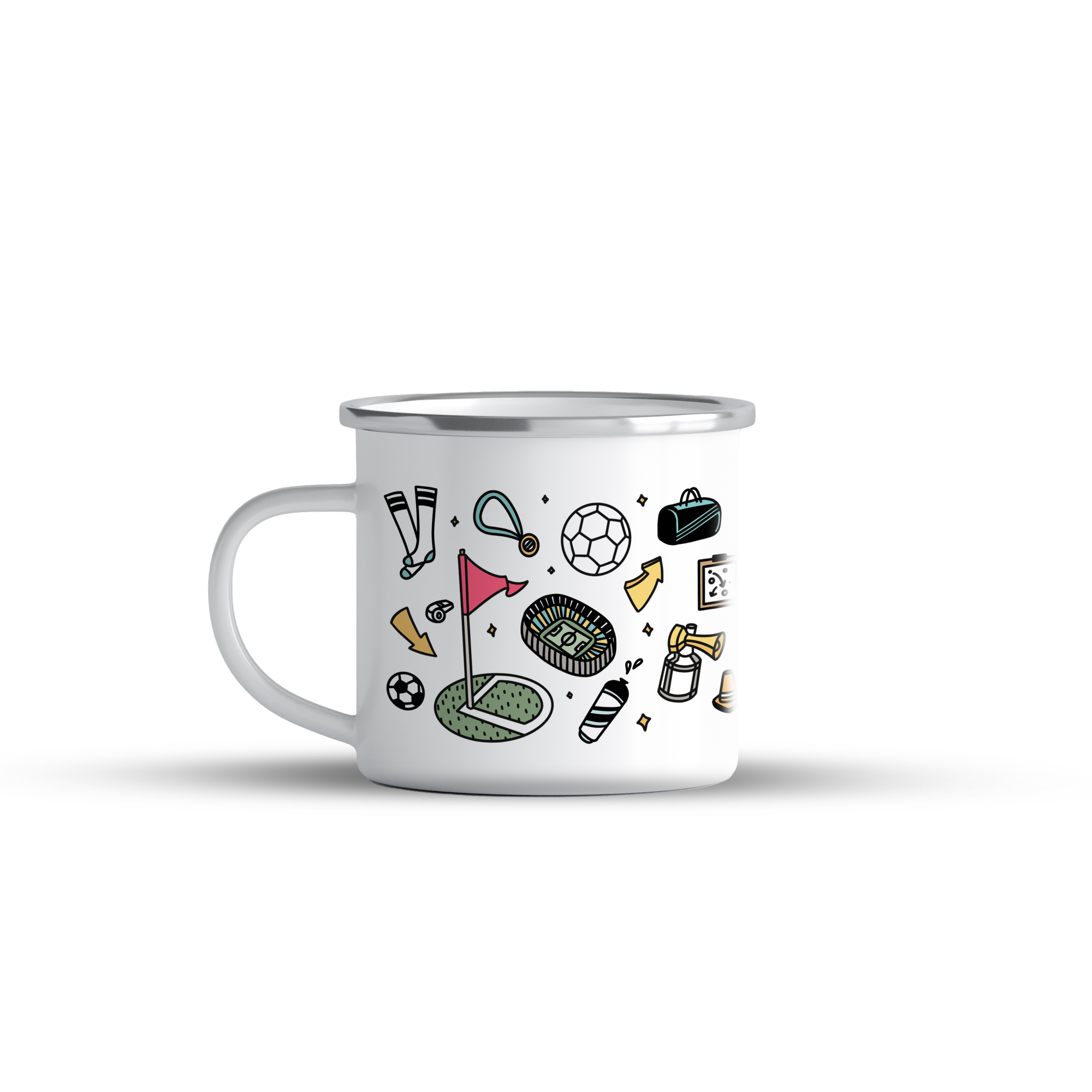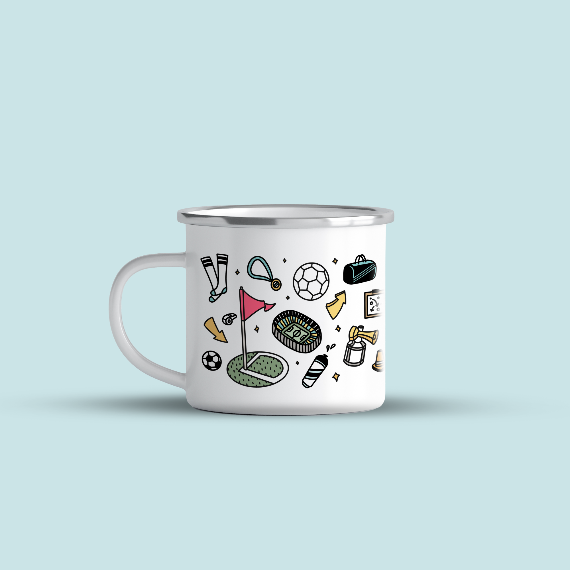 Cană emailată de calitate cu o capacitate de 360 ml. Grafica este unică si desenată manual.