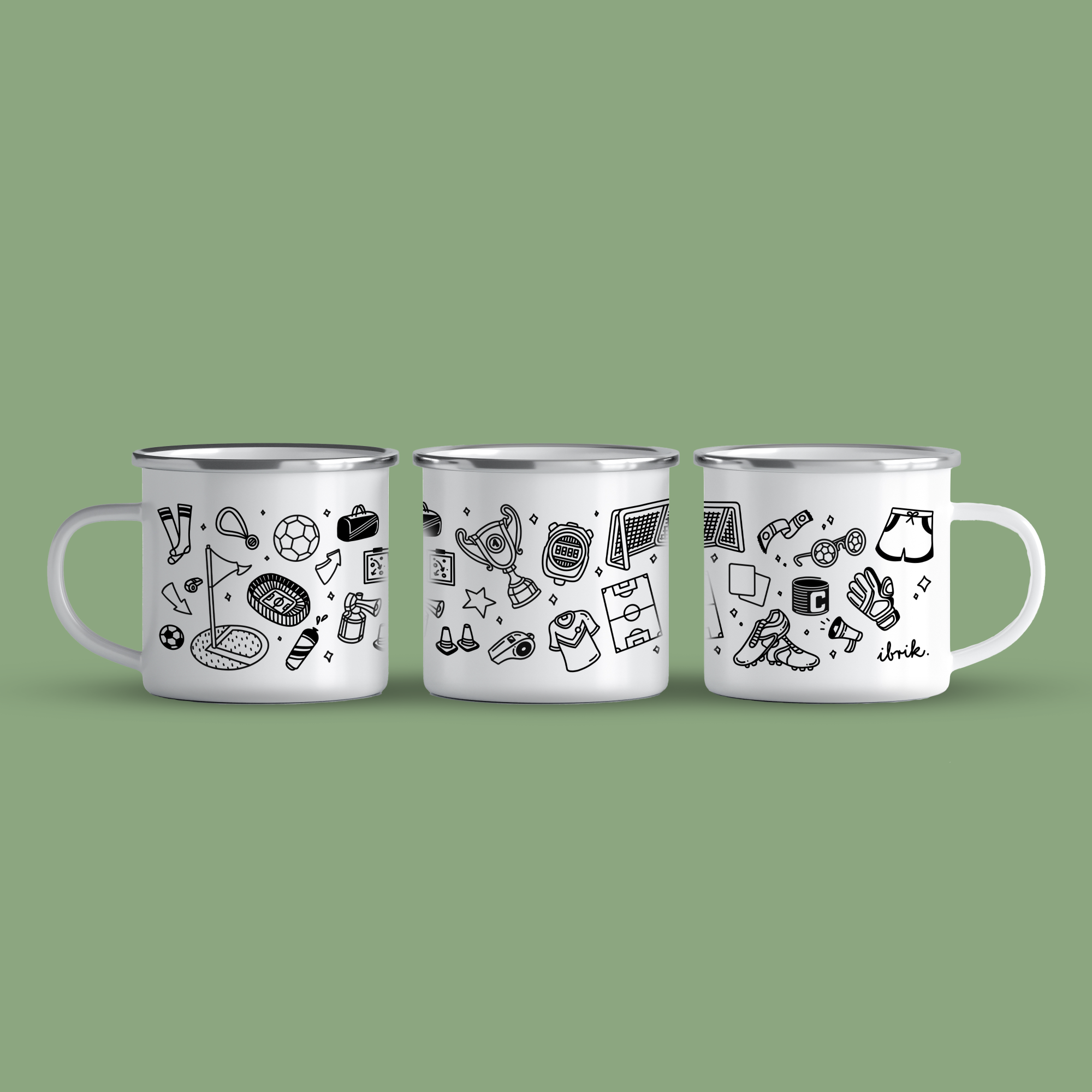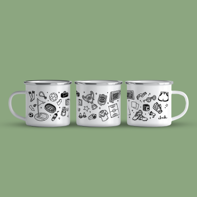 Cană emailată de calitate cu o capacitate de 360 ml. Grafica este unică si desenată manual.