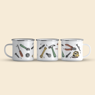 Cană emailată Hand tools, alb, ibrik, 360 ml
