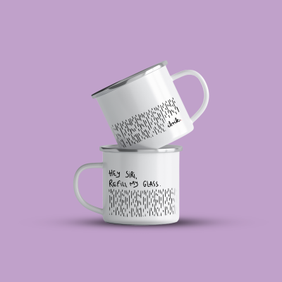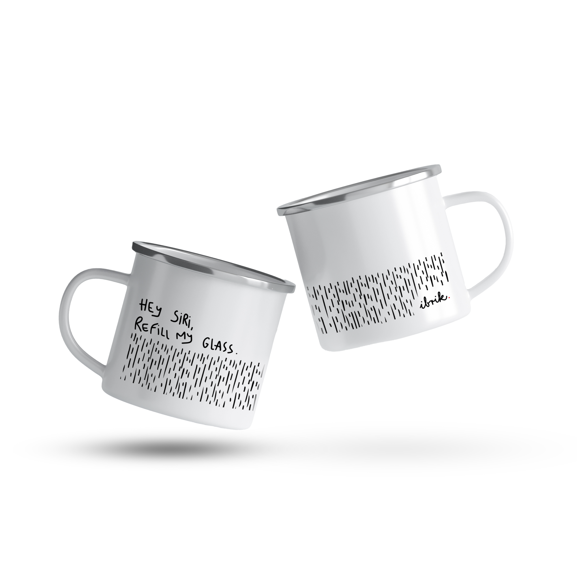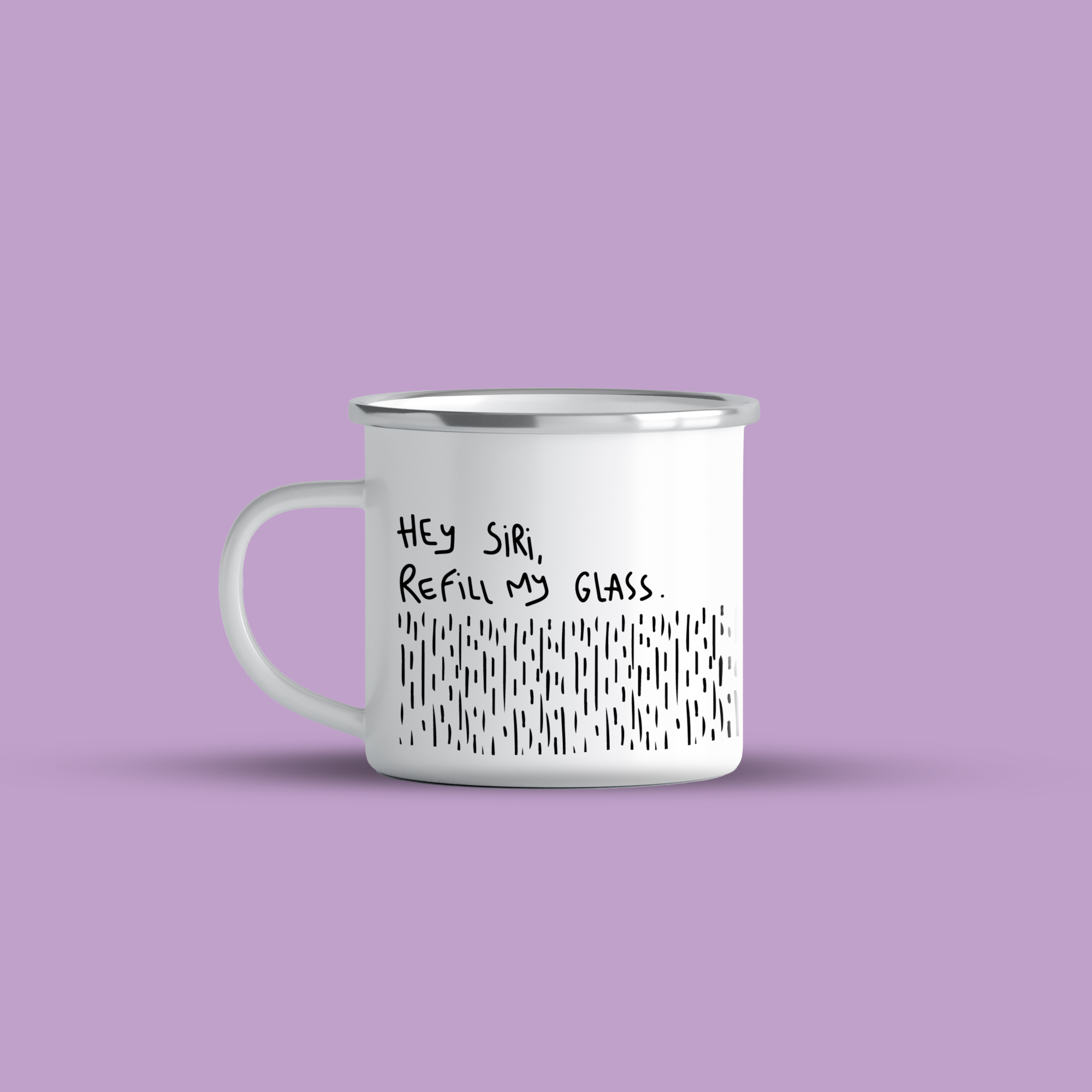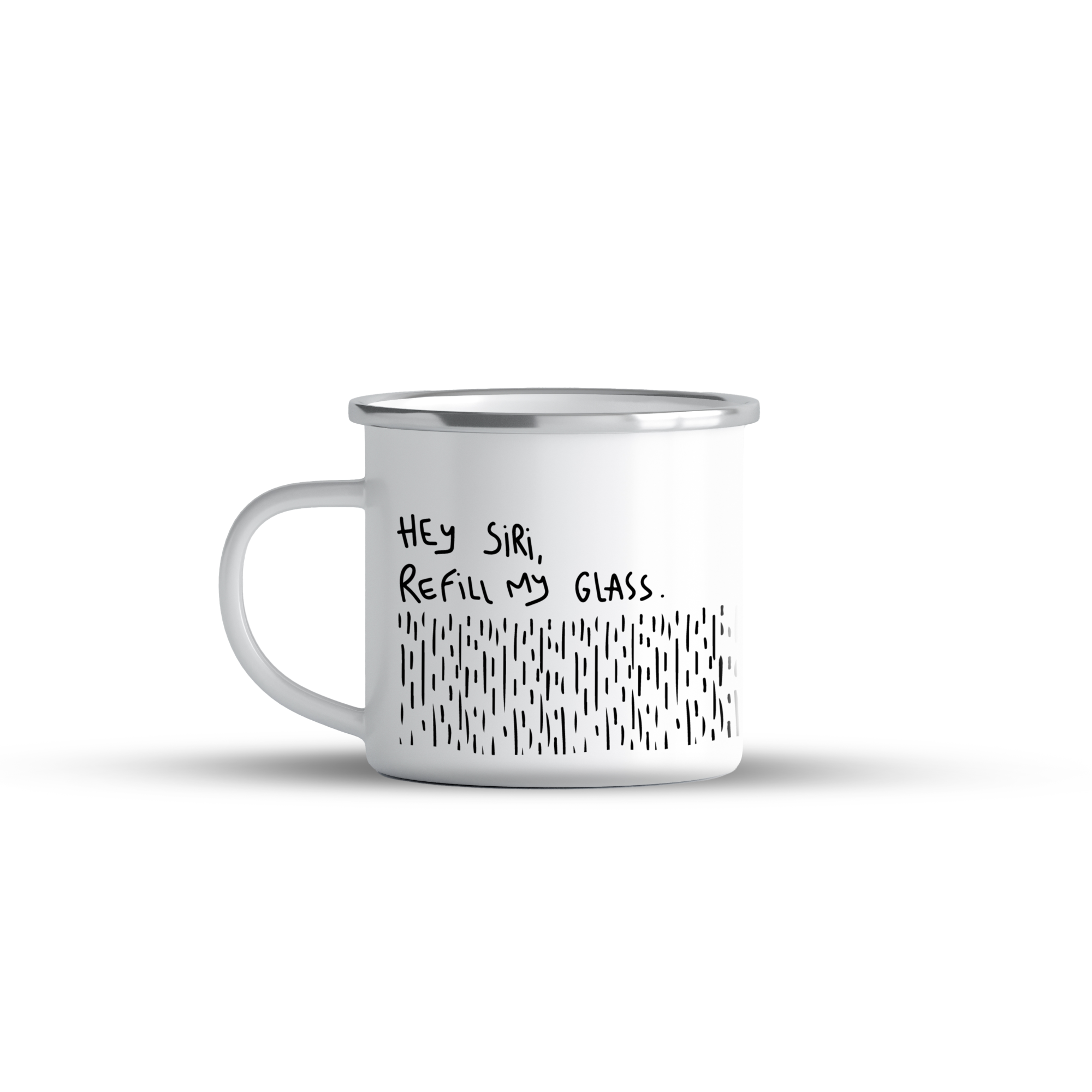 Cană emailată ‘Hey Siri, refill’, alb, ibrik, 360 ml