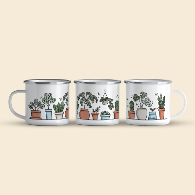 Cană emailată Houseplants, alb, ibrik, 360 ml