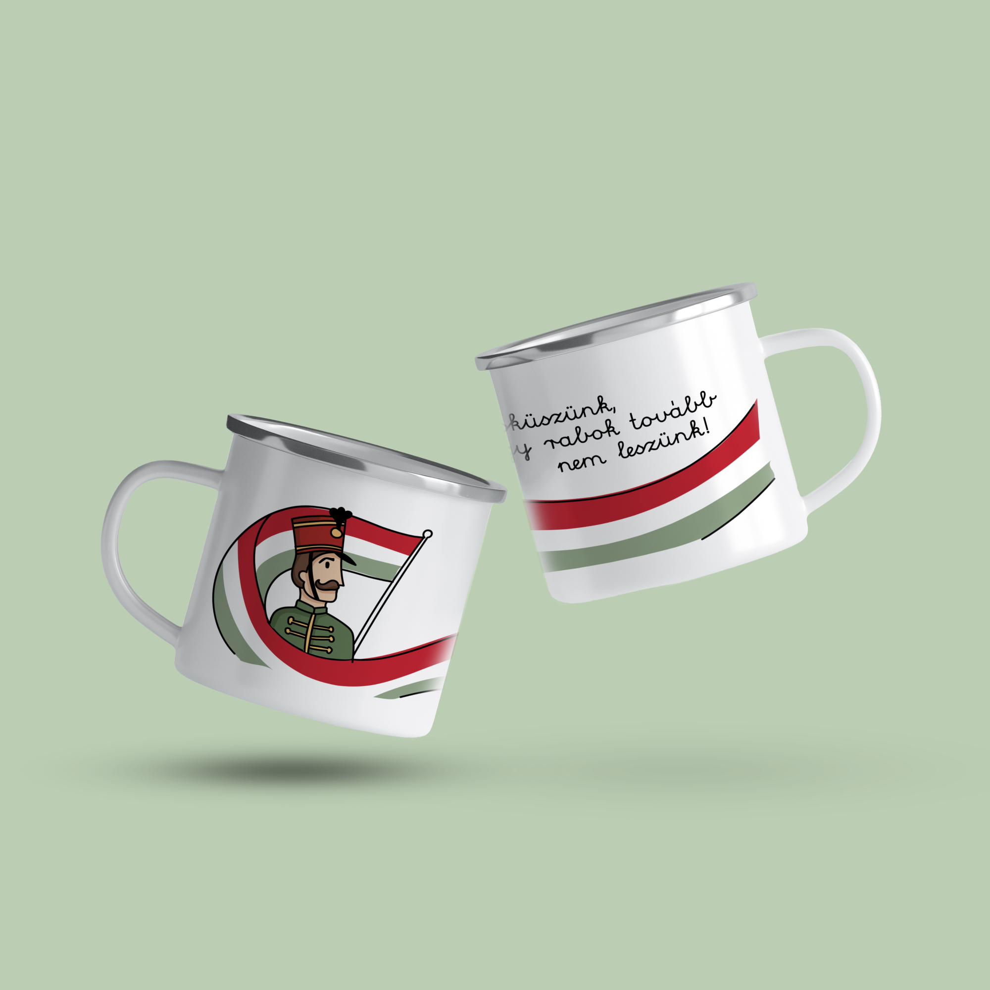 Cană emailată de calitate cu o capacitate de 360 ml. Grafica este unică si desenată manual.