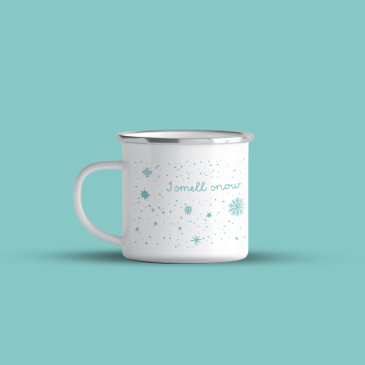 Cană emailata „I smell snow”, alb, ibrik, 360 ml