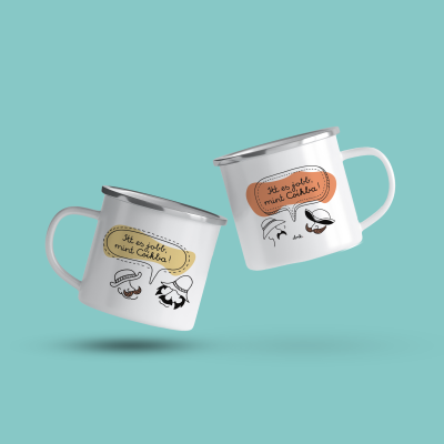 Cană emailată de calitate cu o capacitate de 360 ml. Grafica este unică si desenată manual.