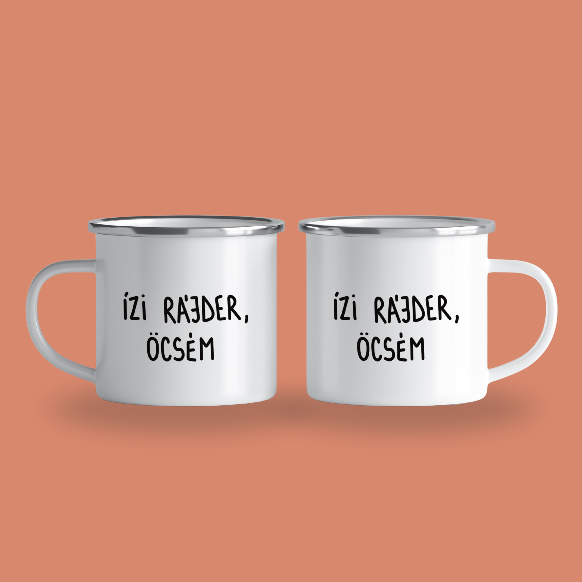 Cană emailată „Ízi rájder, öcsém”, alb, ibrik, 360 ml