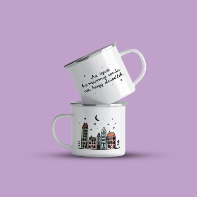 Cană emailată de calitate cu o capacitate de 360 ml. Grafica este unică si desenată manual.