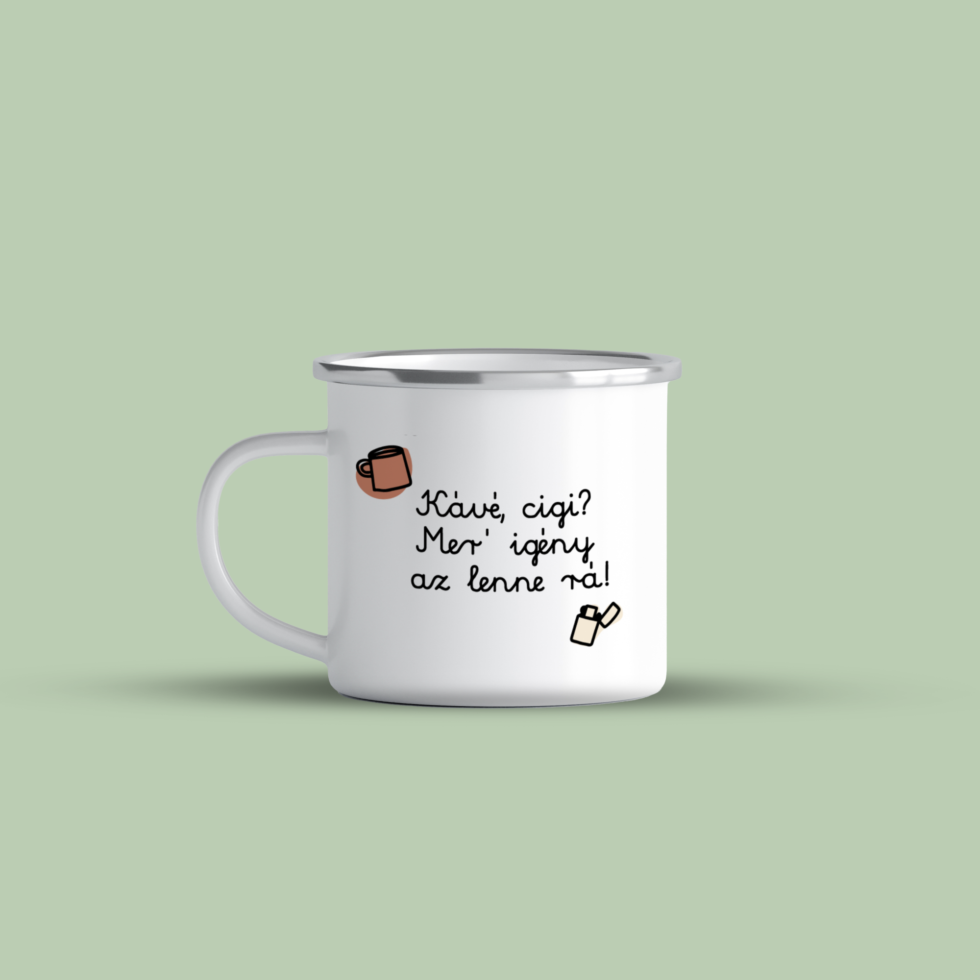 Cană emailată Kávé cigi, alb, ibrik, 360 ml