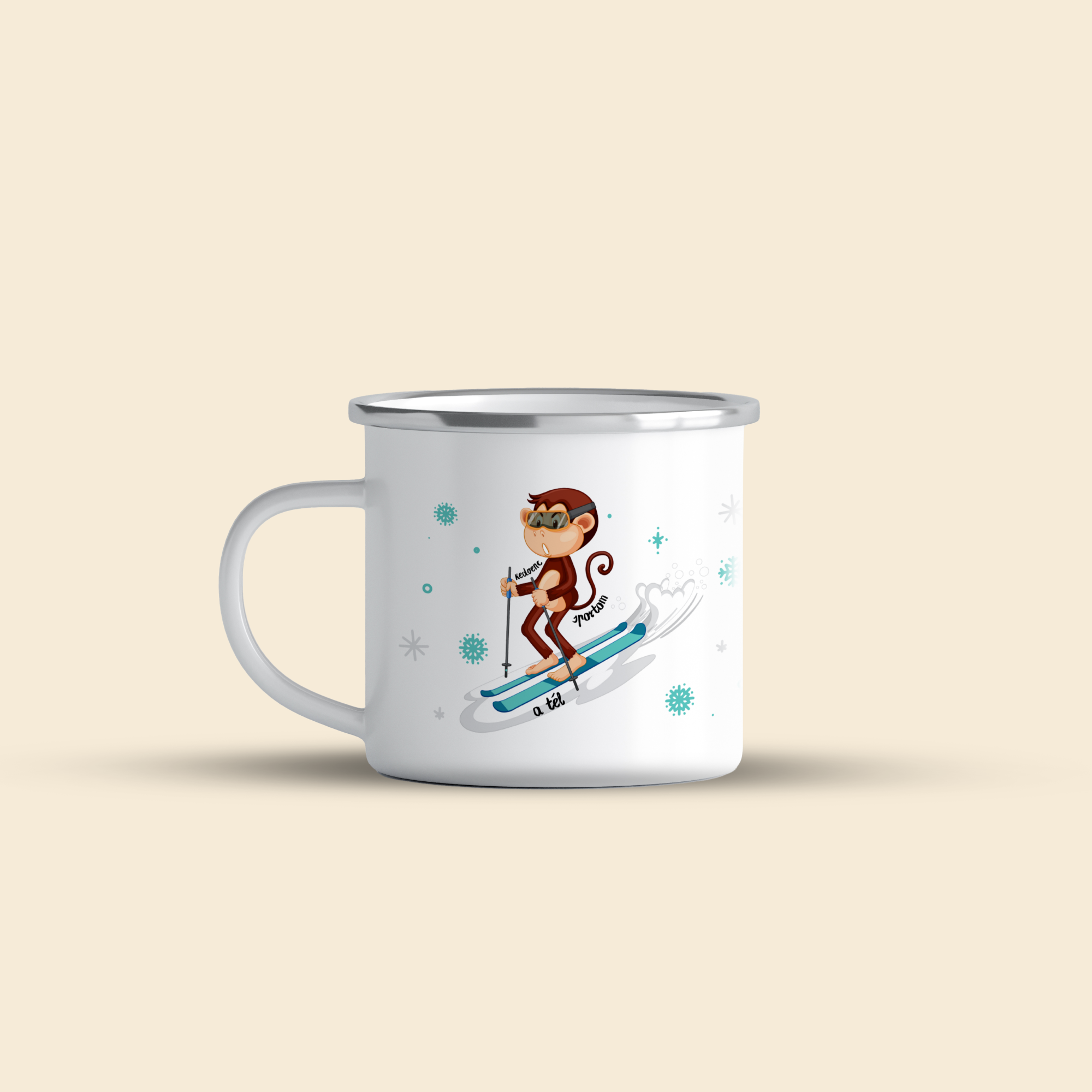 Cană emailata „Kedvenc sportom a tél”, alb, ibrik, 360 ml