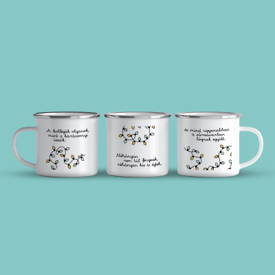 Cană emailată de calitate cu o capacitate de 360 ml. Grafica este unică si desenată manual.