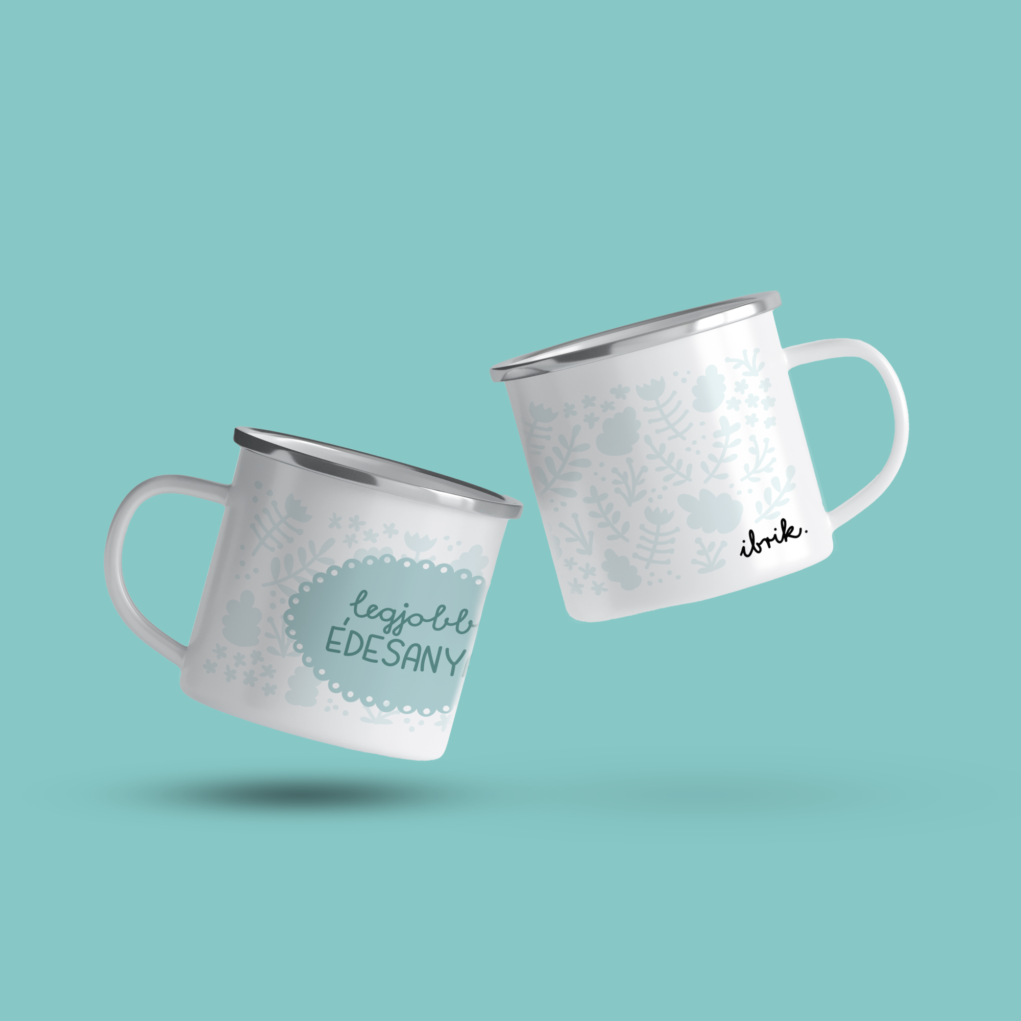 Cană emailată „Legjobb édesanya” kék, alb, ibrik, 360 ml