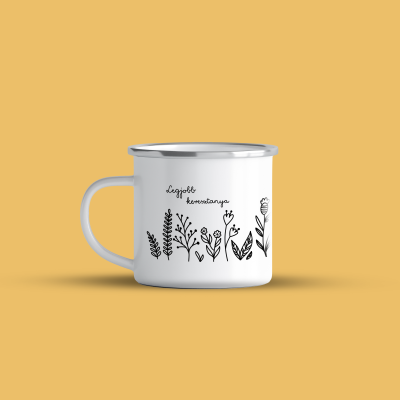 Cană emailată „Legjobb keresztanya” BW, alb, ibrik, 360 ml